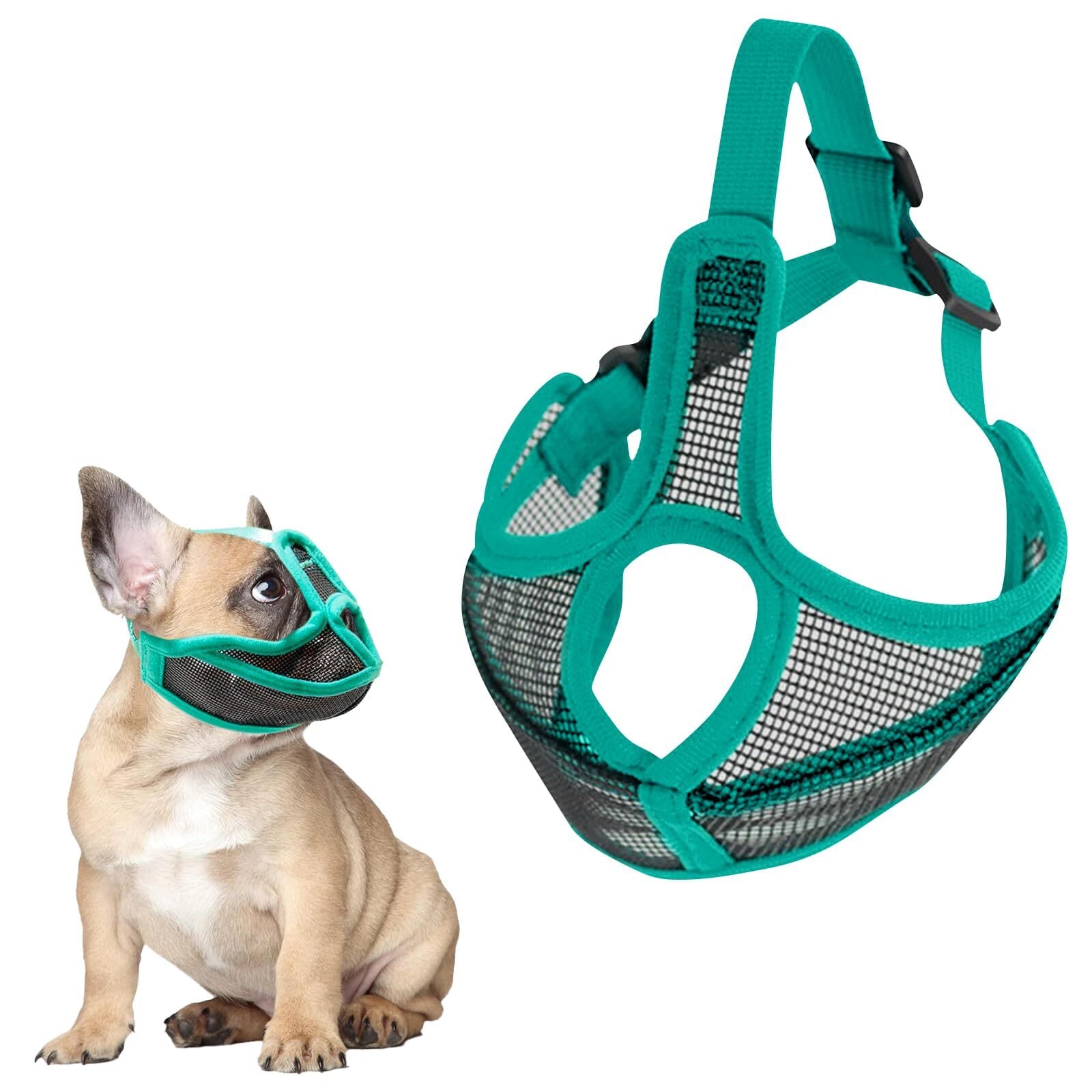 【在庫処分】Charming Club 口輪 犬用マズル シアン 4サイズ 無駄吠え癖対策 噛みつき 拾い食い防止 メッシュ通気性よい サイズ調整可能 小型犬 中型犬対応 短い鼻の犬専門 フレンチブルドッグ 着脱しやすい ワンちゃん外出用 忍者マスク造型 (青い, S)