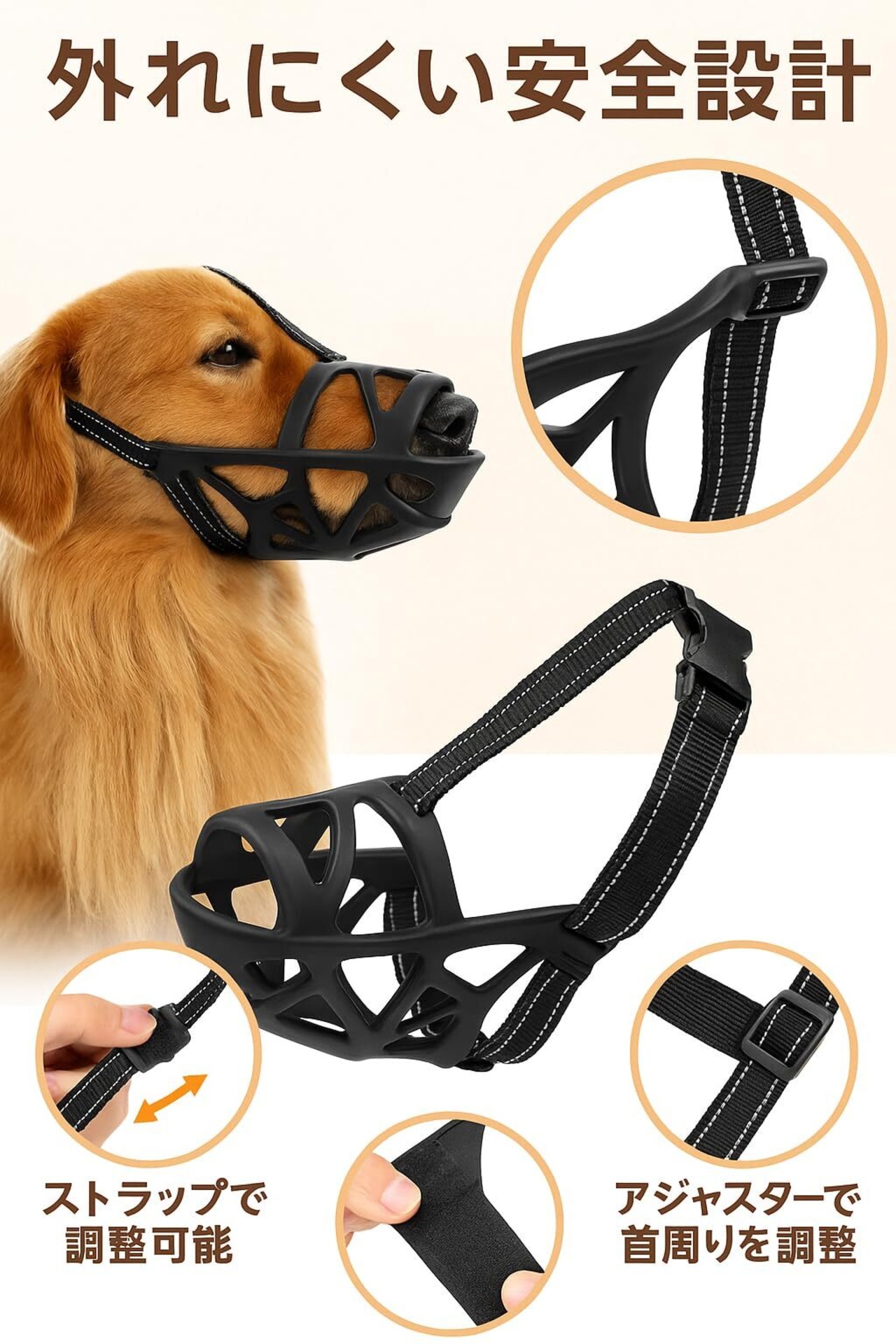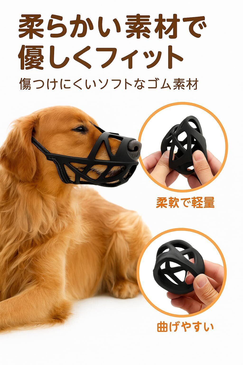 犬用マズル 犬口輪 咬みつき防止 柔らかい素材 飲みやすい 調整可能な 犬用訓練用品 4サイズ (L)