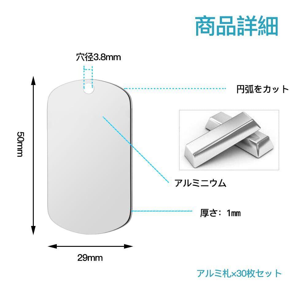 【寸法】アルミ札×30枚セット、50×29mm、穴径3.8mm、厚さ:1㎜。手作りに適しており、名前、電話などの情報を書くことができます。