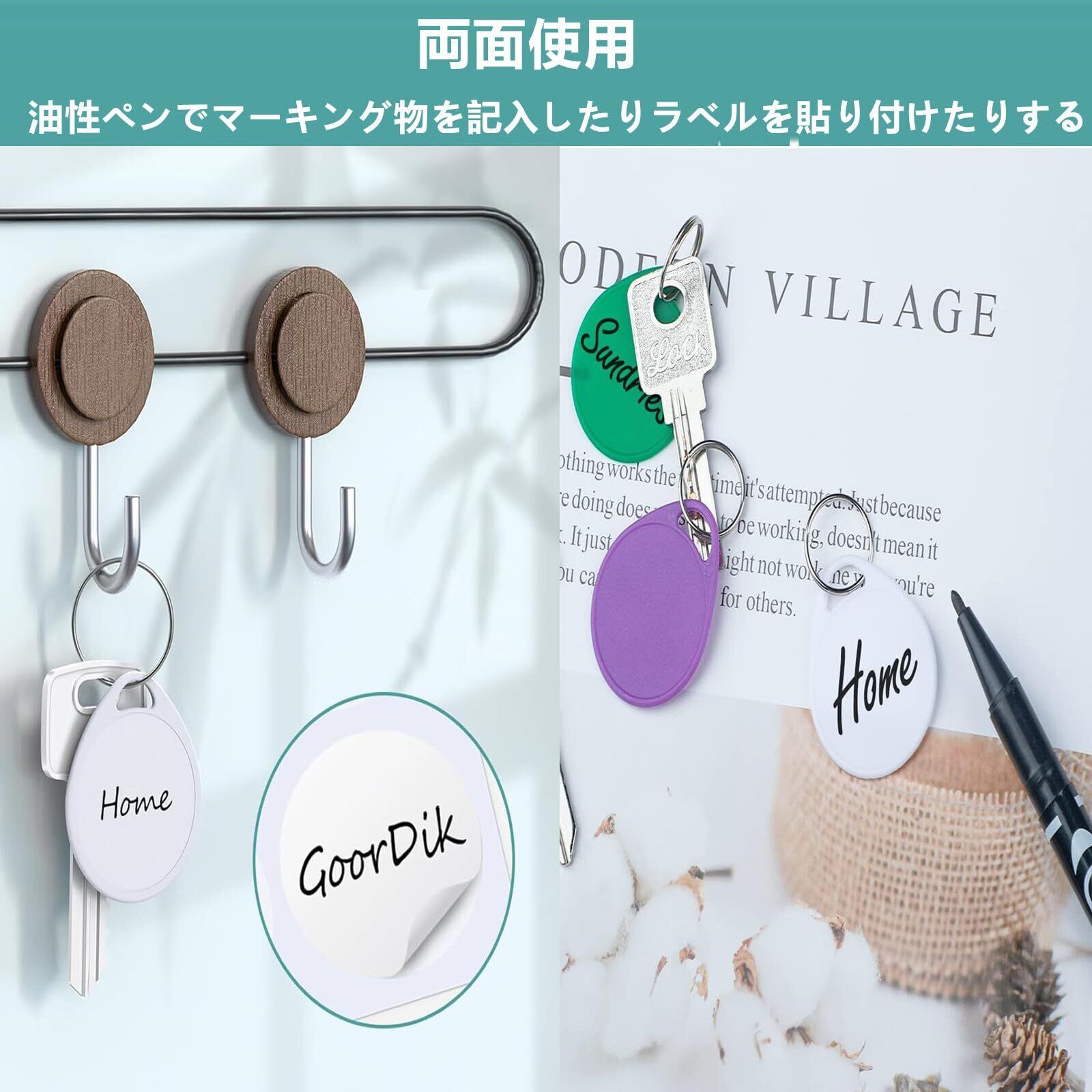 【クイック識別】マーキング物品を油性ペンで記入したり,キーホルダーの空白の円形中央領域にラベルを貼り付けることができます(商品には含まれません)。鍵 タグの両面には書くことができ、7色(赤、オレンジ、黄、緑、青、紫、白、)をすばやく分類し、混合を防ぐことができます