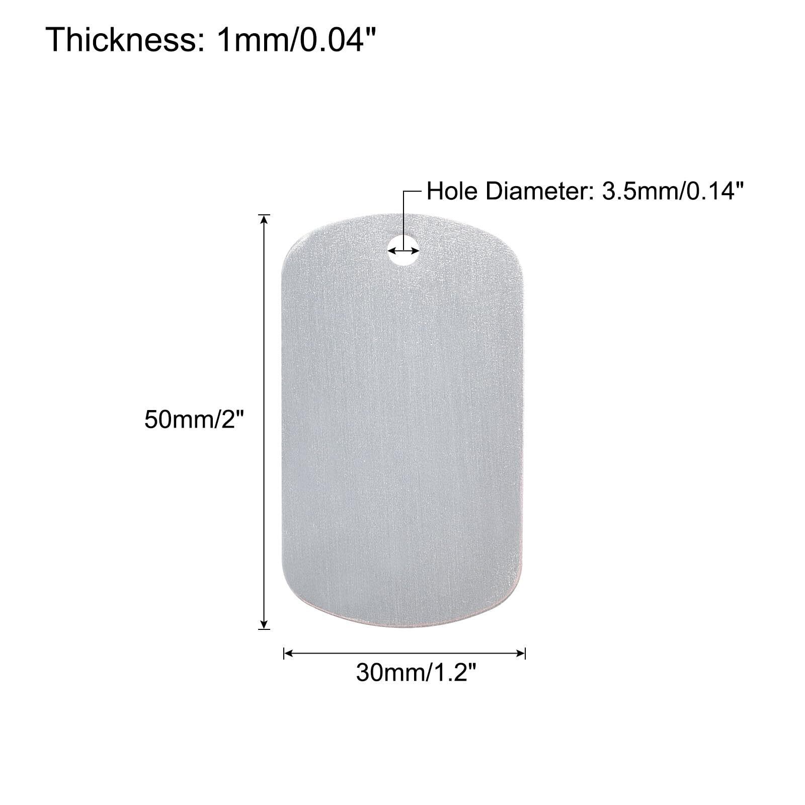 パッケージ内容: 20個 x 長方形の空白アルミニウムタグ; 長さ:50 mm; 幅:30 mm; 厚さ:1 mm; 穴の直径:3.5 mm; 穴の数:1。