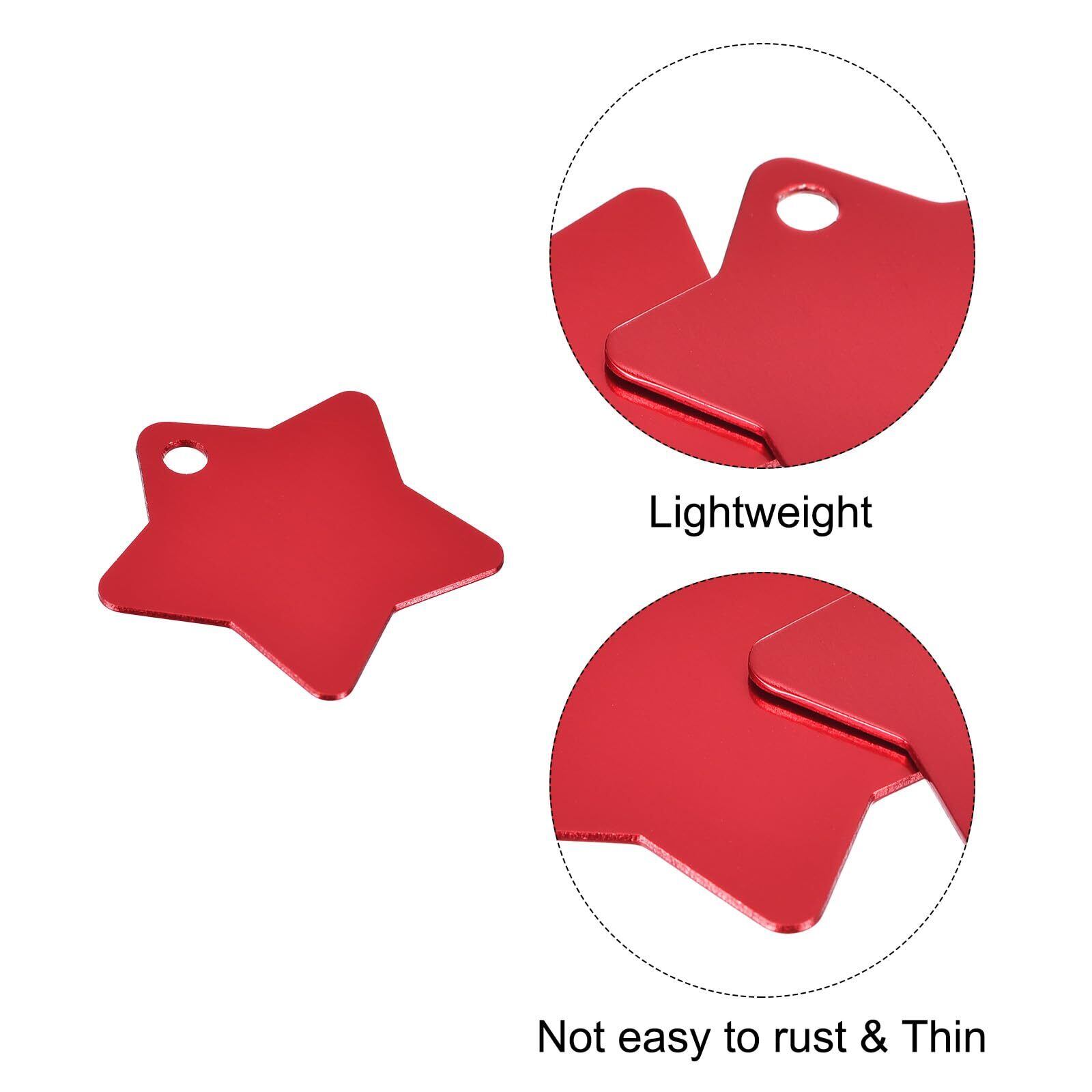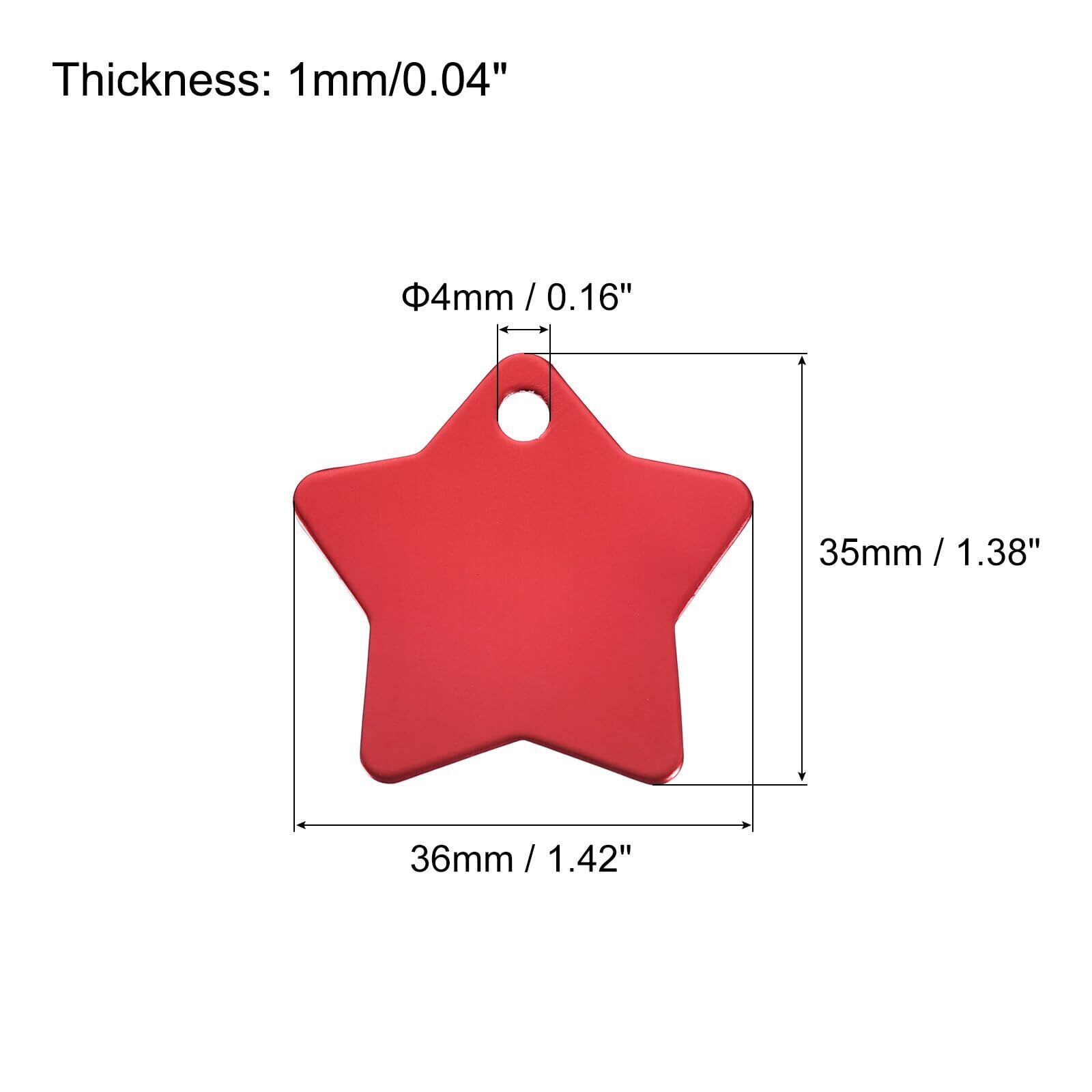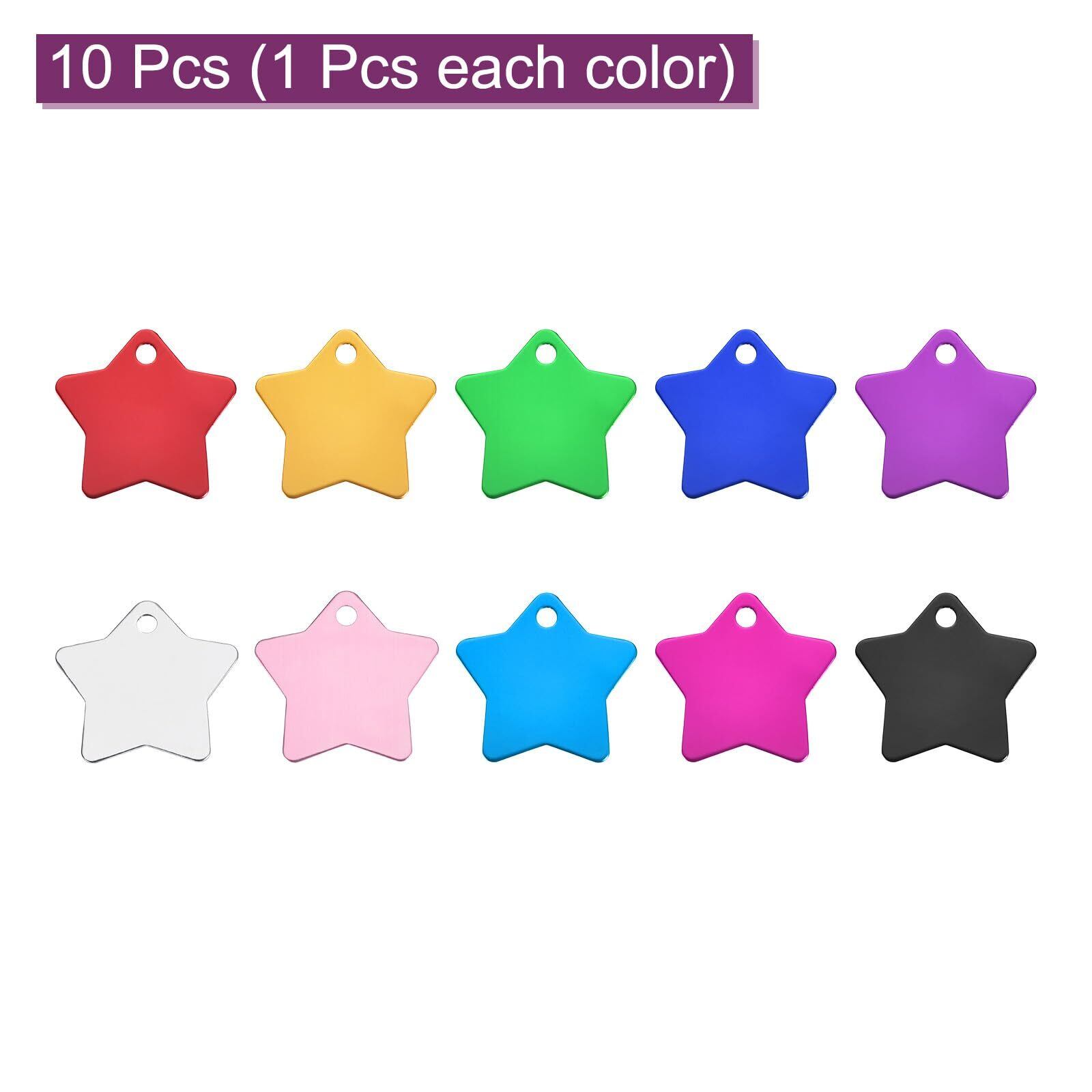 メタルエングレービングタグ、サイズ:長さ36mm/1.42"、幅35mm/1.38"、厚さ1mm/0.04"、穴の直径4mm/0.16"、穴の数1、素材:アルミニウム、カラー:マルチカラー、パッケージ内容:5つ星アルミニウムタグ10個入り
