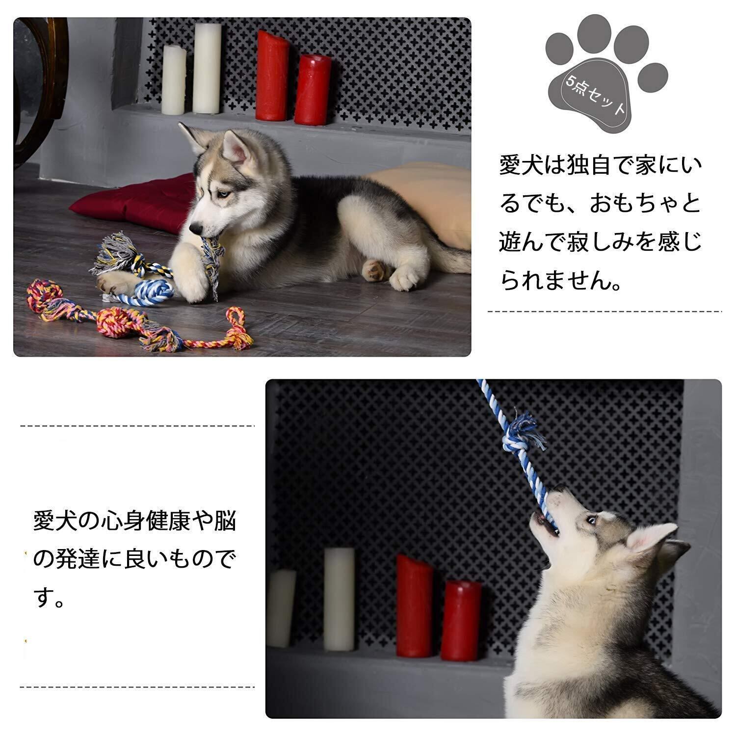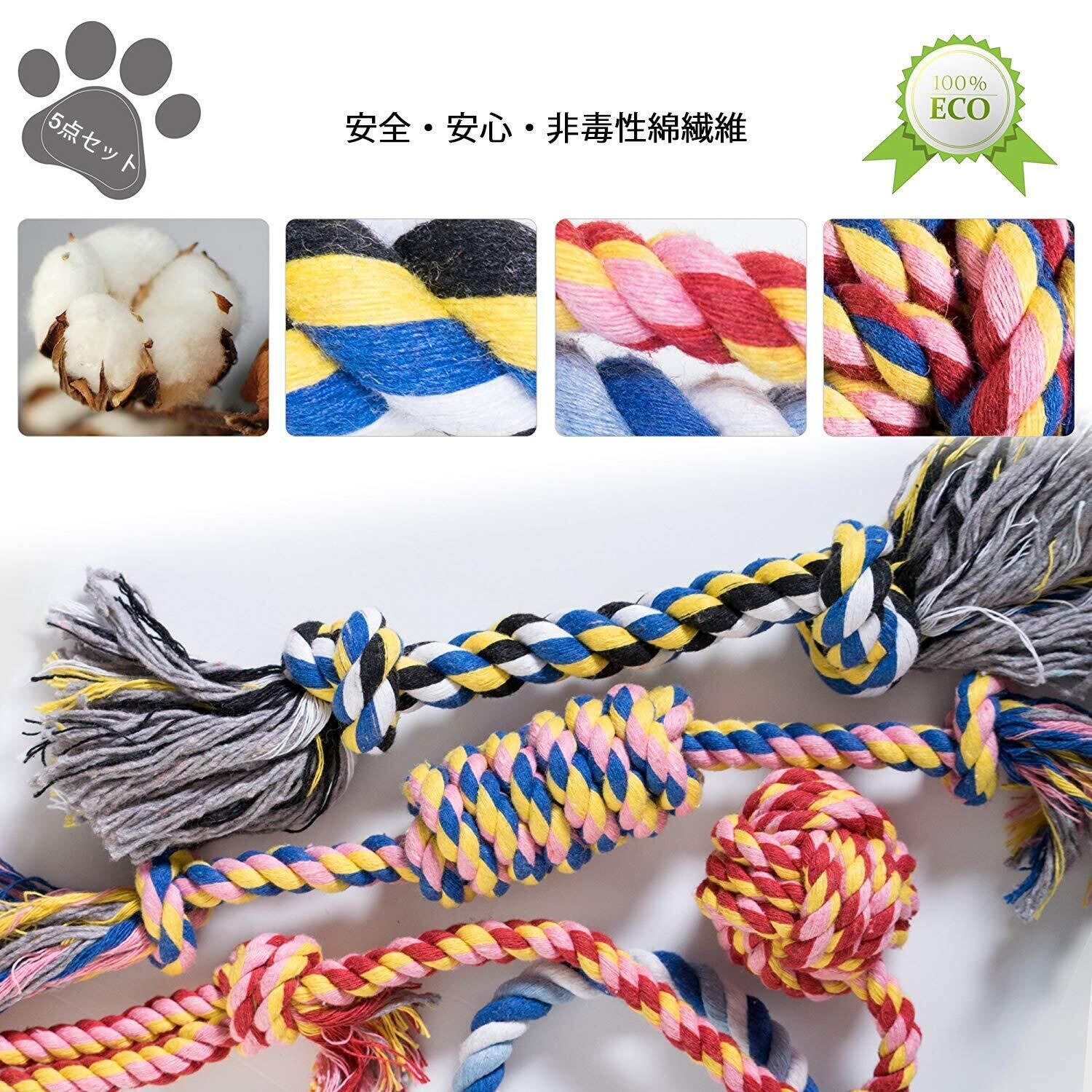 SUSWIM 犬ロープおもちゃ 犬おもちゃ 犬用玩具 噛むおもちゃ ペット用 コットン ストレス解消 丈夫 耐久性 清潔 歯磨き 小/中型犬に適用 (5 スーツ)
