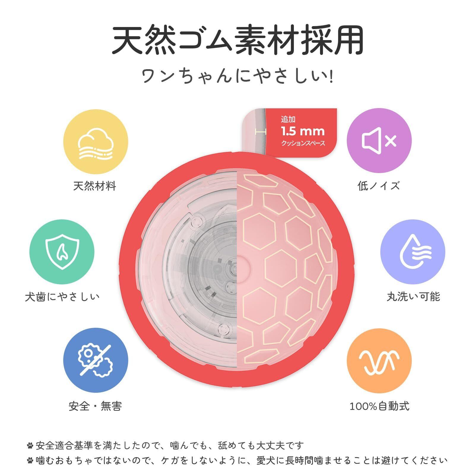 【天然ゴム素材&丸洗い可能】犬おもちゃは安全適合基準を満たした天然ゴムを採用しているので、ワンちゃんが遊ぶのに優しいです。また、ゴム製のは耐久性に優れ、割れにくいため、安心して使えます。一方、犬はおもちゃを噛んだり、舐めたりするのが大好きなので、汚れても水洗いできるポイントを搭載しています。ボールを追いかけて走る愛犬の姿には、なんとも微笑ましく幸せな気持ちにさせてくれますね。