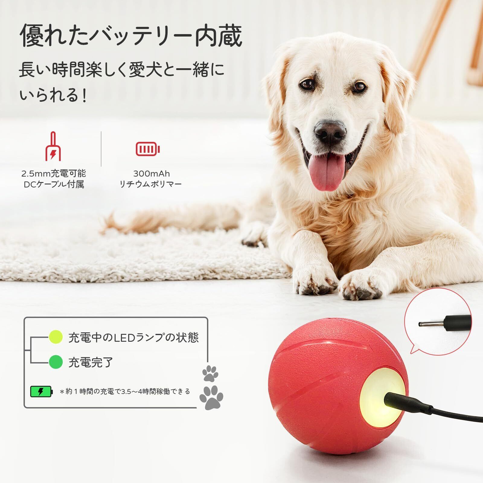 【パッケージング内容&品質】パッケージング内容:ウィキッドボール*1、DCケーブル*1、日本語取扱説明書*1 。が厳格に検品、梱包を実施させていただいております。メーカーが提供しておりますので、商品に何か問題(初期不良、破損、部品不足など)がございましたら、お気軽にお問い合わせください。(注文履歴から出品者にお問い合わせ)。噛むおもちゃではないので、ケガをしないように、愛犬に長時間噛ませることは避けてください。噛む力が強い犬の場合、初めて使用する前にある程度のトレーニングが必要ですね。ワンちゃんが遊んでいる間は飼い主の監視下での使用をお勧めします。