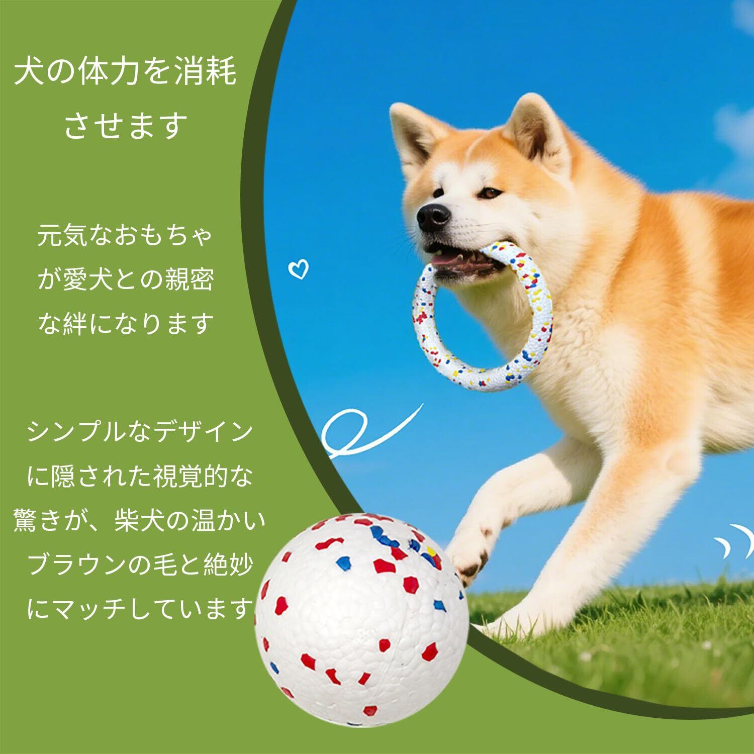 多様なデザイン:骨型、輪型、ボール型といった多様な形状があり、白地にカラフルな斑点が散らばったデザインで、ペットの注意を引き、遊ぶ意欲を喚起します