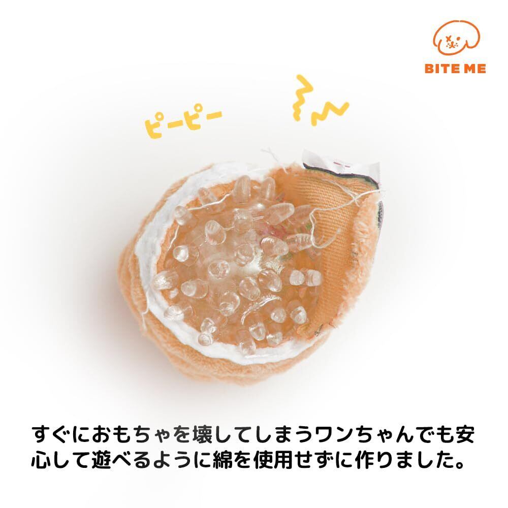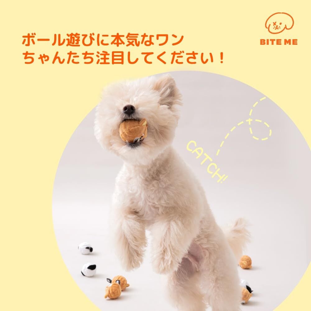 大人気のボールがリニューアルしました! ボール遊びに本気なワンちゃんたち注目してください! ふわふわ~かわいいボール二匹! すぐにおもちゃを壊してしまうワンちゃんでも安心して遊べるように綿を使用せずに作りました。 一口サイズの大きさなので、思いっきり投げて楽しく遊ぶことができます!