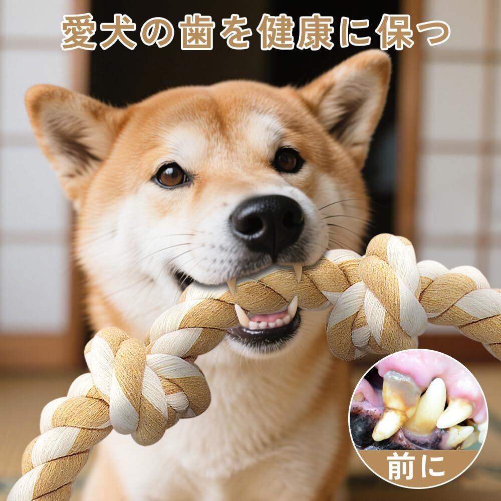 Ycozy 犬 おもちゃ ロープ 4ノット 中型/小型犬 玩具 ロープ 壊れない 犬 紐玩具 66cm 犬噛むおもちゃ 丈夫 ストレス解消