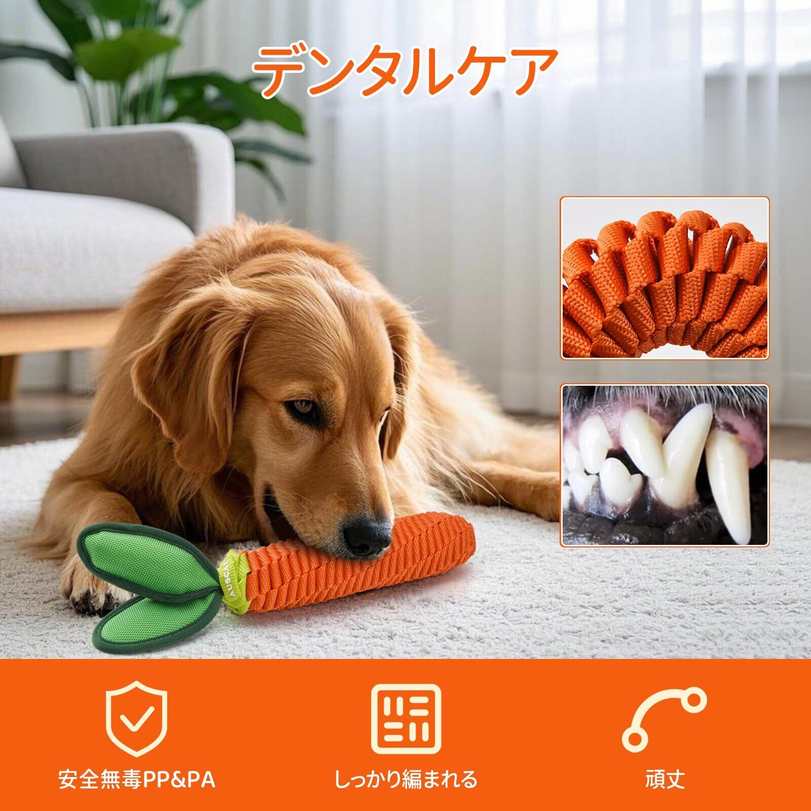 AUSCAT 犬 ロープ おもちゃ 噛む玩具 頑丈 ひっぱりっこ 音が鳴る 知育玩具 おやつを入れる にんじん