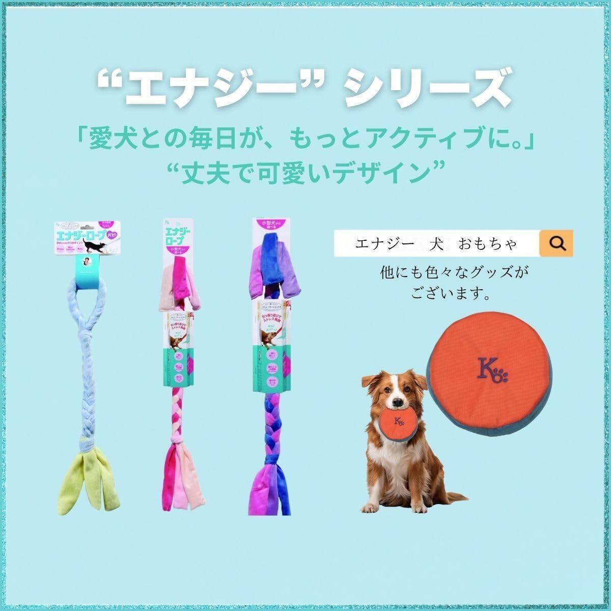 「ファーストコミニュケーショントイ」として、仔犬専用ロープ型トイ。楽しさだけでなく、咬むことの抑制やルール付けまで教えることができる優れものTOY!