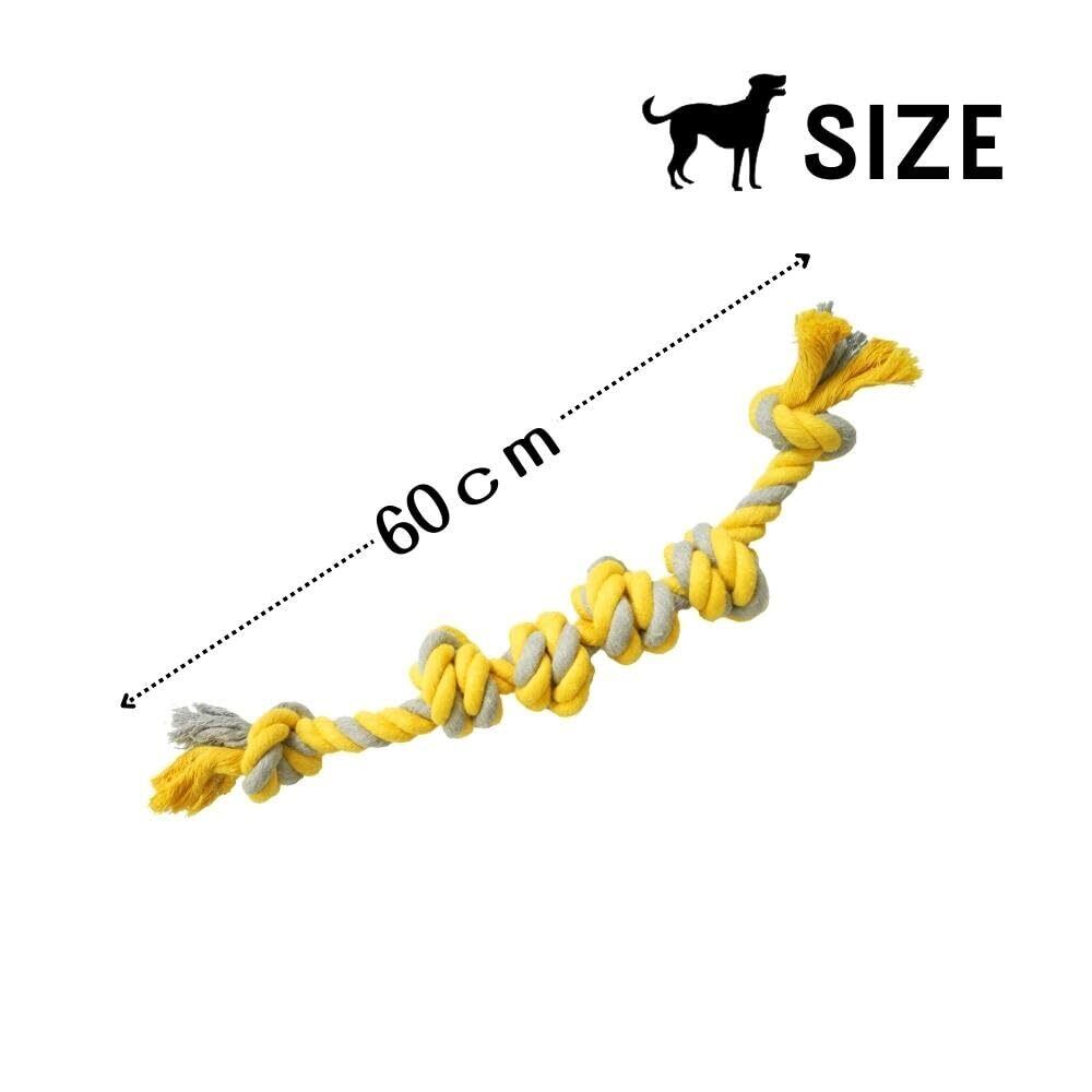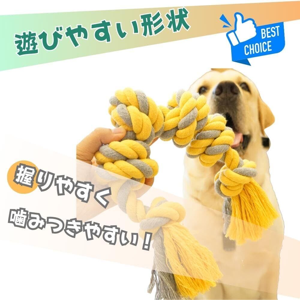 JP Number 犬 おもちゃ ロープ 噛む 玩具 引っ張り 中型犬 大型犬 デンタルケア 歯磨き 天然素材 高耐久(イエロー×グレー)