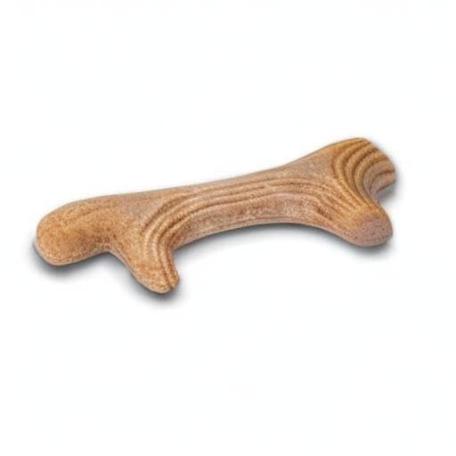 ●細かい天然木ファイバーを無毒性樹脂で固めた、噛むことが大好きな愛犬のためのデンタルトーイです。●夢中で噛んでも歯を傷めにくい硬さで、裂けたり割れたりすることなく細かく削れ、小さな破片を飲み込んでも体に害を与えずに排泄されるので安心して遊べます。●愛犬の歯が滑らず噛みやすい、表面の凹凸がしっかりついたリアルな鹿角の形状です。
