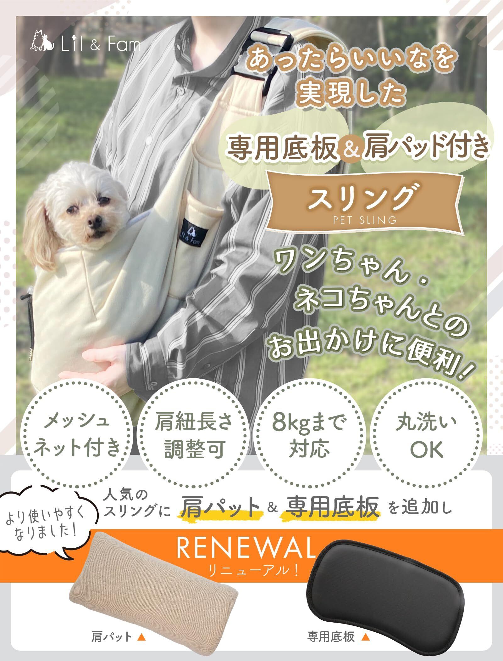 【底板付き】Lil&Fam ペットスリング 犬 抱っこ紐 キャリーバッグ ペットバッグ メッシュネット付き 長さ調節可能 猫 キャリー (オフホワイト)