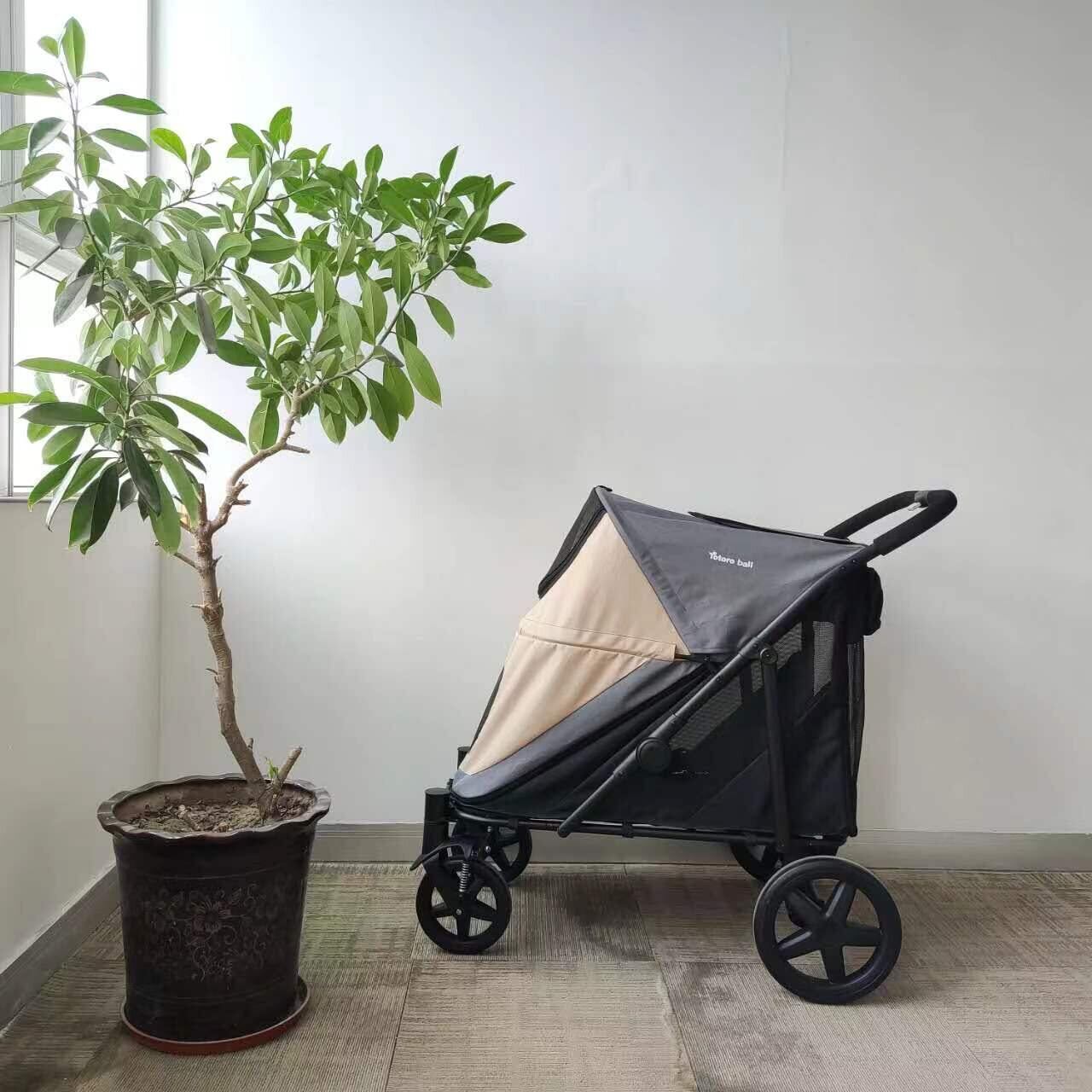 Totoro ball ペットカート大型犬 用カート 犬 バギー 多頭 大型犬 ペットバギー 4輪 ワンタッチ折りたたみ式 軽量コンパクト 組み立て簡単 外出便利 大型・中型・多匹飼い向け 耐荷重55Kg (グレー+ベージュ)