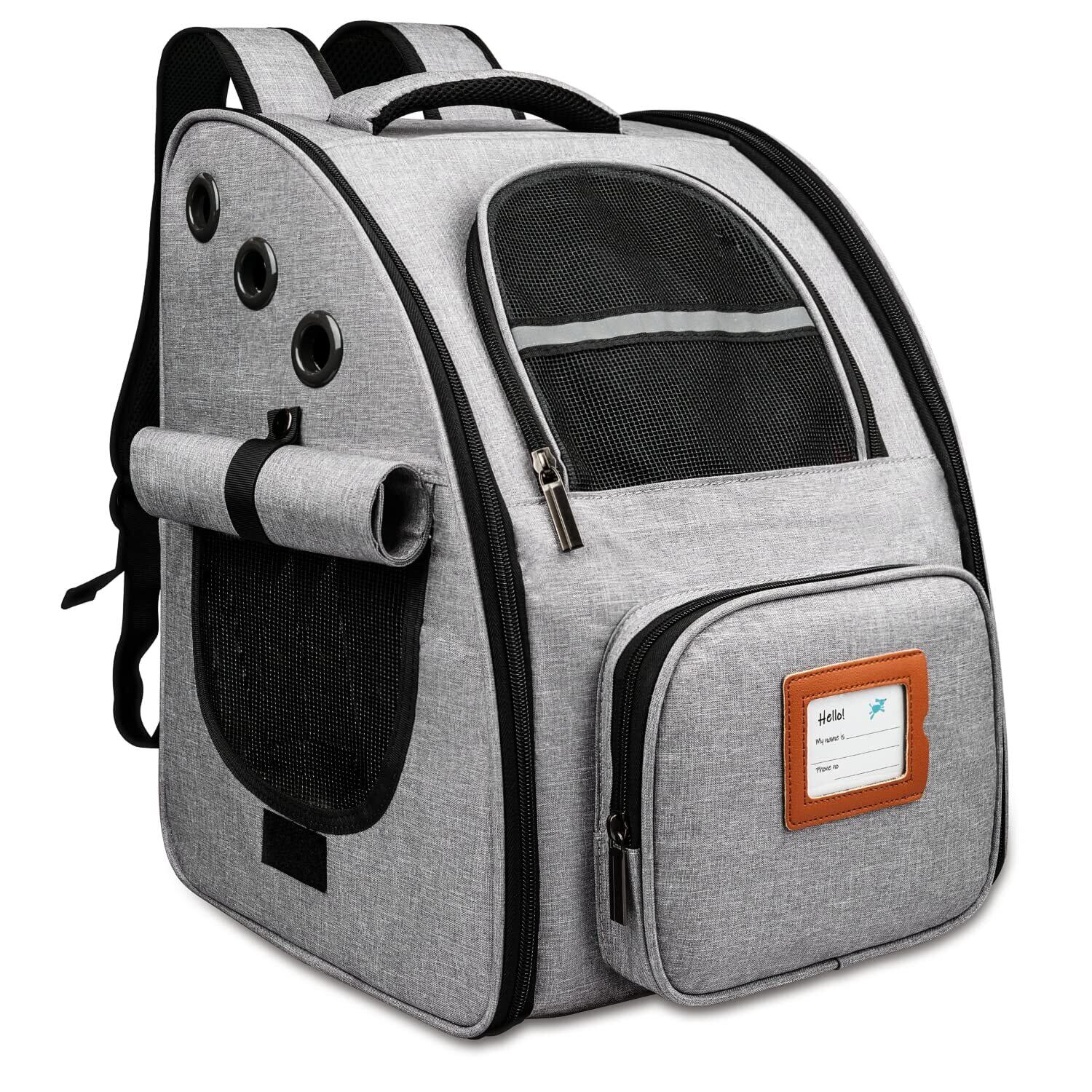 最新型 犬 猫 リュック メッシュ窓3つ カーテン付き 強通気性 飛び出し防止リード マット付き 強安定性 ペットキャリーバッグ お出かけ 小動物用 折り畳可 電車移動散歩 旅行 病院 災害避難に適用 耐荷重 8kg 軽量 グレー Funshare