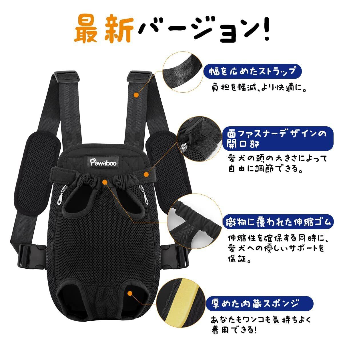 【在庫セール】Pawaboo ペット抱っこバッグ リュック型 ペット用 抱っことおんぶ兼用 キャリー 肩パット付き スリング 通気 おんぶ紐 飛ぶ防止 両手解放 快適 2WAY お出かけ用 中型 小型犬/猫兼用 Mサイズ BLACK