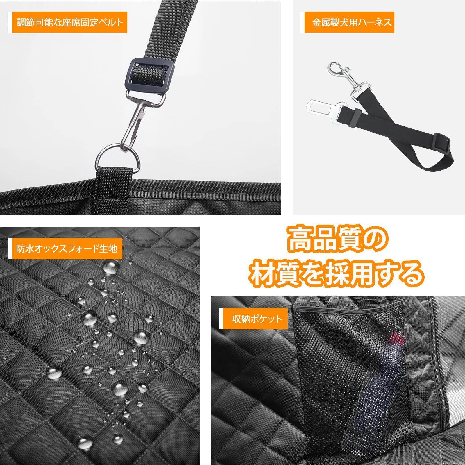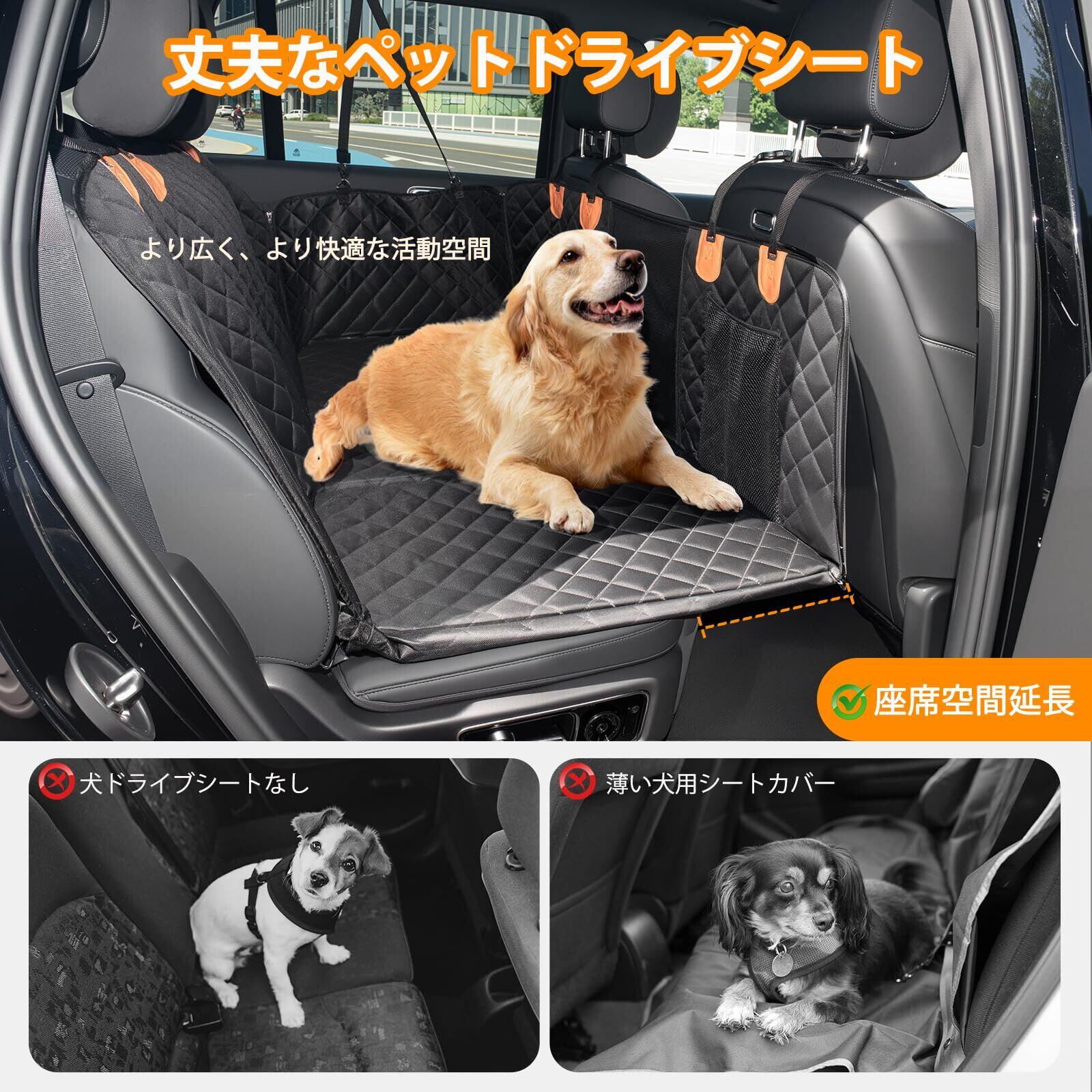 ペットドライブシート 後部座席用 固め設計 犬 車 シートカバー 大型犬対応 撥水 滑り止め/落ち防止 犬用カーシート ベルト付き 空間拡張 折り畳み式 車載ペットマット 洗濯可 傷つきにくい素材 可視メッシュ窓 車ペットシートカバー ペット用トランクマット兼用 旅行/アウトドア