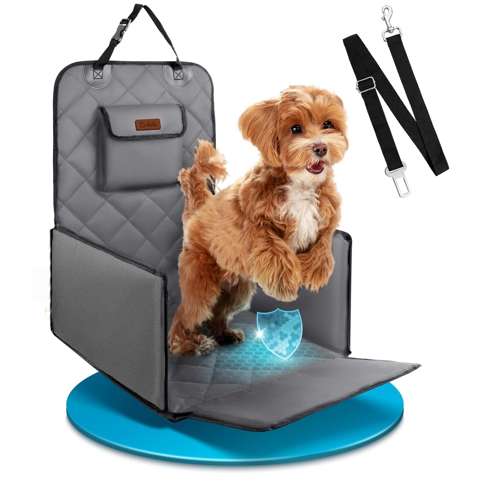 Okiki 犬 車 ペットシート 後部座席 ペット用ドライブシート 汚れ防止 防水 滑り止め 持ち運び 全車種汎用品 折り畳み式 安全ベルト付き