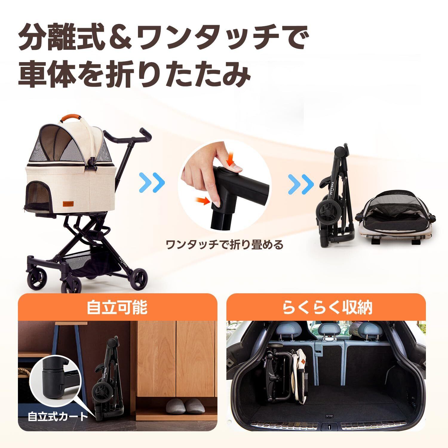 【数量限定】【史上最小折畳サイズ】PETTENA ペットカート 分離型 犬用 バギー 猫 耐荷重20KG 軽量 超コンパクト 広い空間 ワンタッチ折畳 自立可能 使用便利 ペットカート 中型犬 小型犬多頭 犬用カート 組立簡単 アルミ製車体 振動減りタイヤ 高い安定性 お出かけ 散歩 通院 ショッピング 18か月期間 PETTENA PETITE カーキ