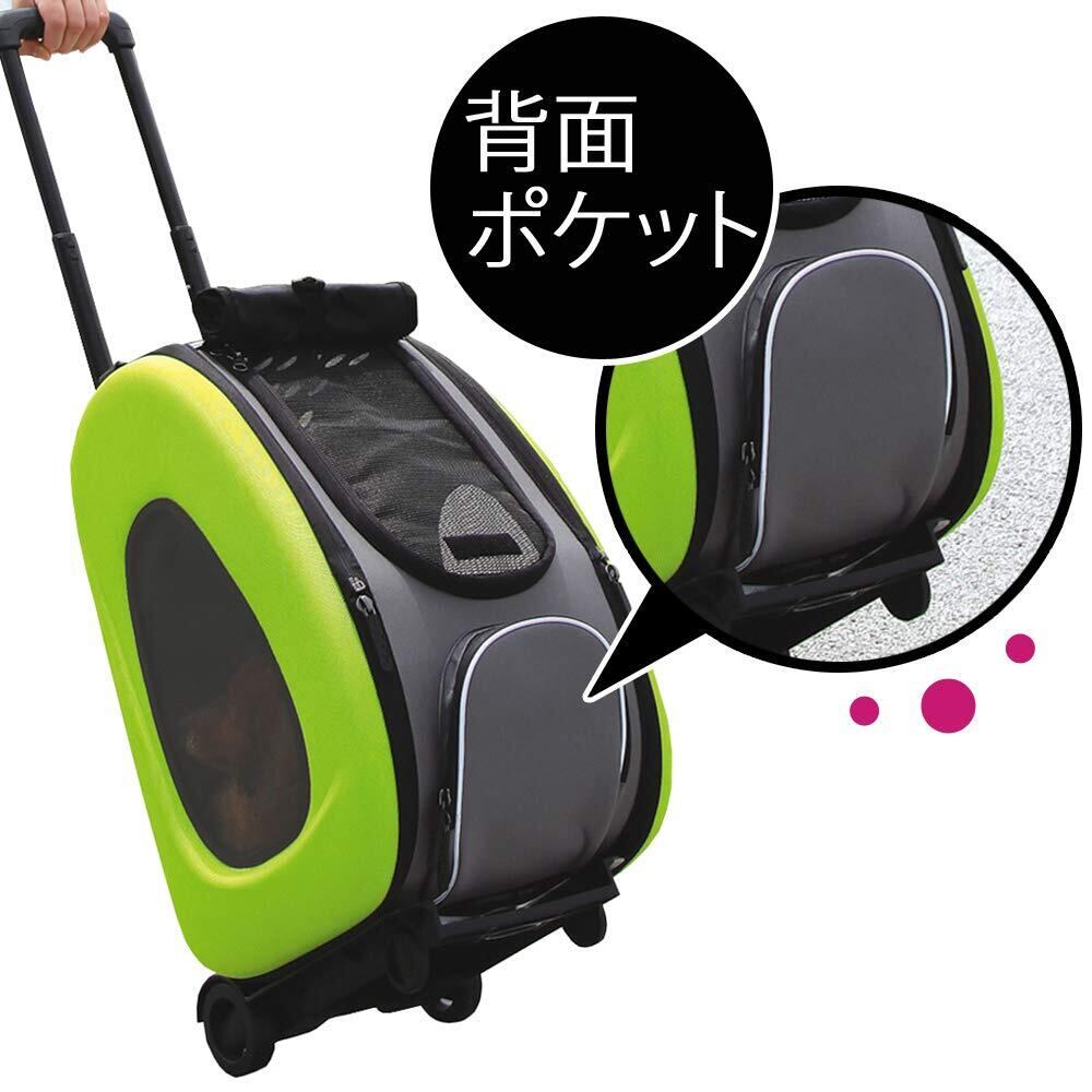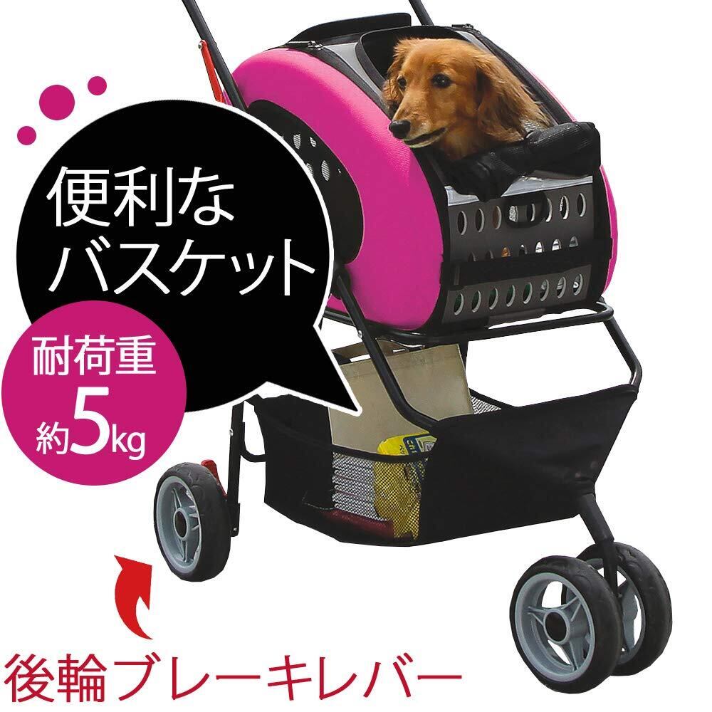【商品説明】:●カート、キャリングカート、キャリー、ドライブキャリーの4通りの使い方ができる多機能ペットカートです●扉が大きく開いて出し入れが楽にできます●使わないときは折りたたんでコンパクトに収納できます●背面ポケット、下段バスケット、ドリンクホルダーなど収納もたっぷり付いています●ワンタッチで折りたたみ夜道でも目立つ反射ベルト付きで、安全性に配慮●楽しくおでかけ