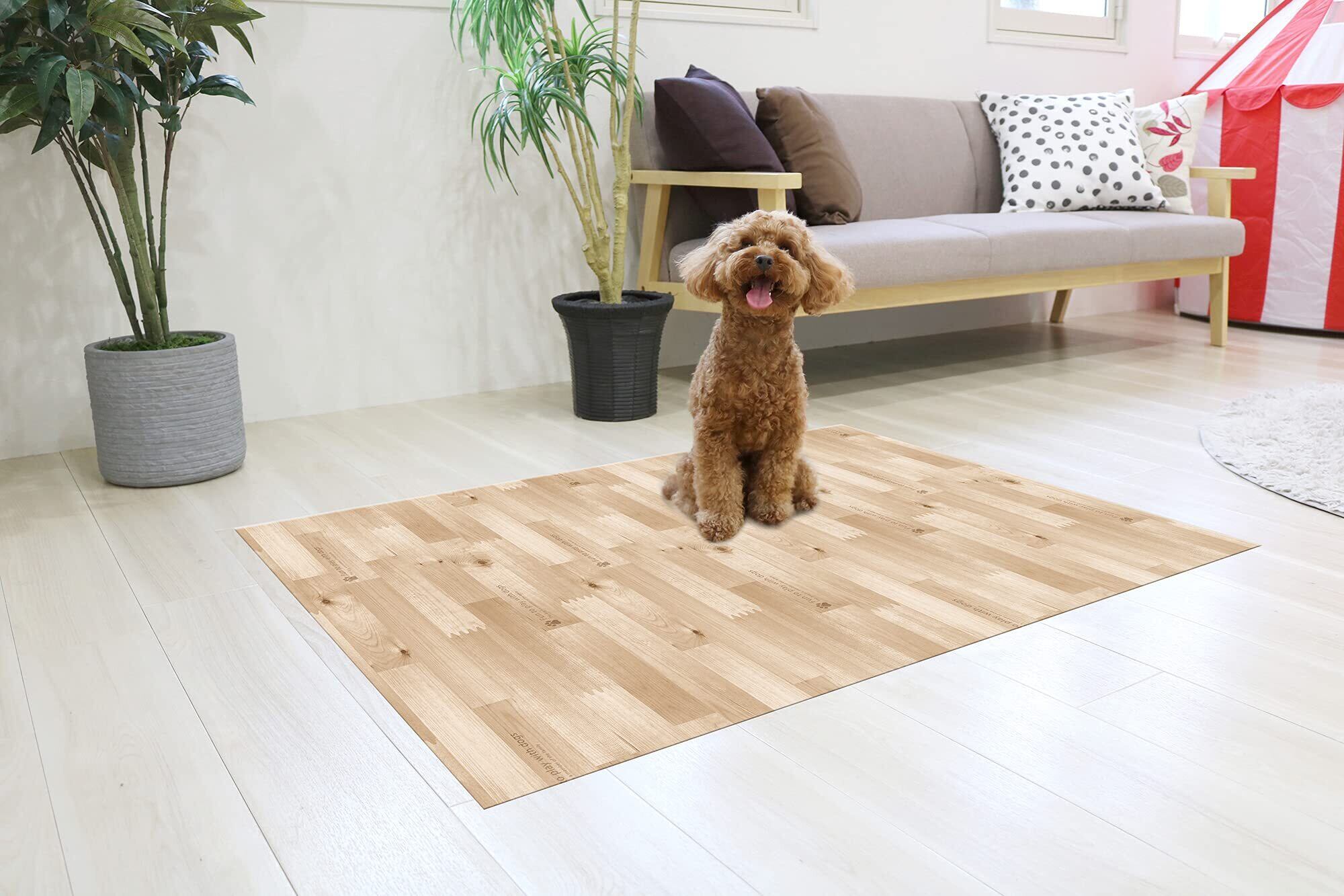 明和グラビア ペット用 防滑・消臭・防水マット INSF-203 90cm×120cm 木目柄 ベージュ L