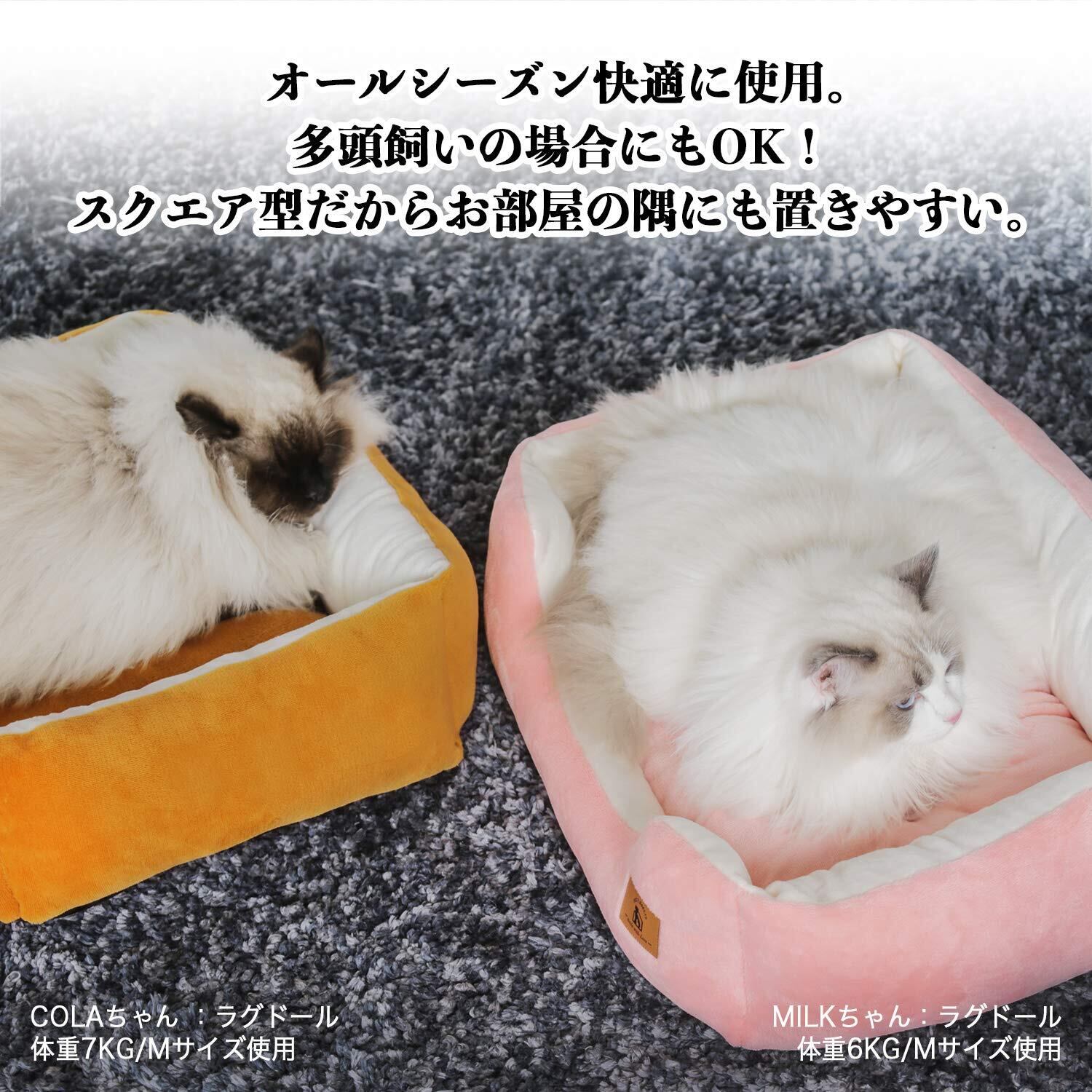 インテリアに馴染む見た目。◆多サイズ対応。S、M、Lサイズあり。多頭飼いの場合にもOK。Lサイズは仲の良いネコ同士が一緒に使える。◆ペットちゃんの好きな場所に設置可能。スクエア形だからお部屋の隅にも置きやすい。ケージ内にも使える。いつでもどこでも、居心地良い!