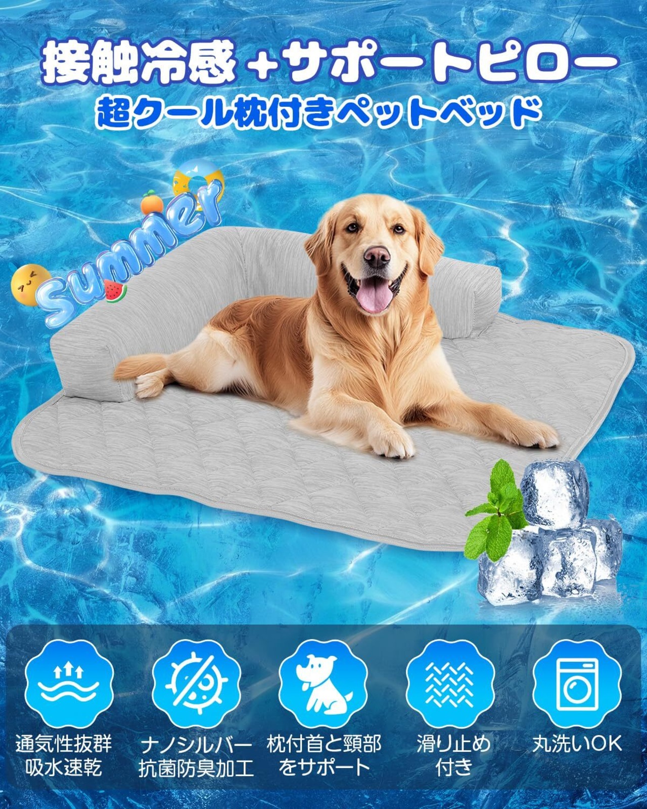 猫 犬用ペットマット 枕付きマット 接触冷感 夏用 ひんやりペットベッド 冷感 ペットベッド ペットシーツ ペット敷きパッド ペットごろ寝マット ソフトクールマット 夏用 クールマット ペットクッション クッションマット 暑さ対策 ひんやり通気性優れ 軽量 涼しい 快適 洗える 滑り止め