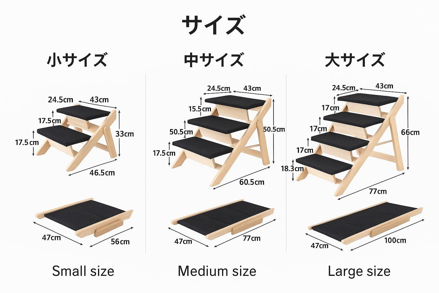 【在庫処分】ペット階段 犬用ステップ 犬用階段 犬 スロープ 天然木材製 折りたたみ 角度調整可能 滑り止めマット付き 犬用踏み台 小型犬 中型犬 高齢犬用 収納便利 (木色, M, 1)