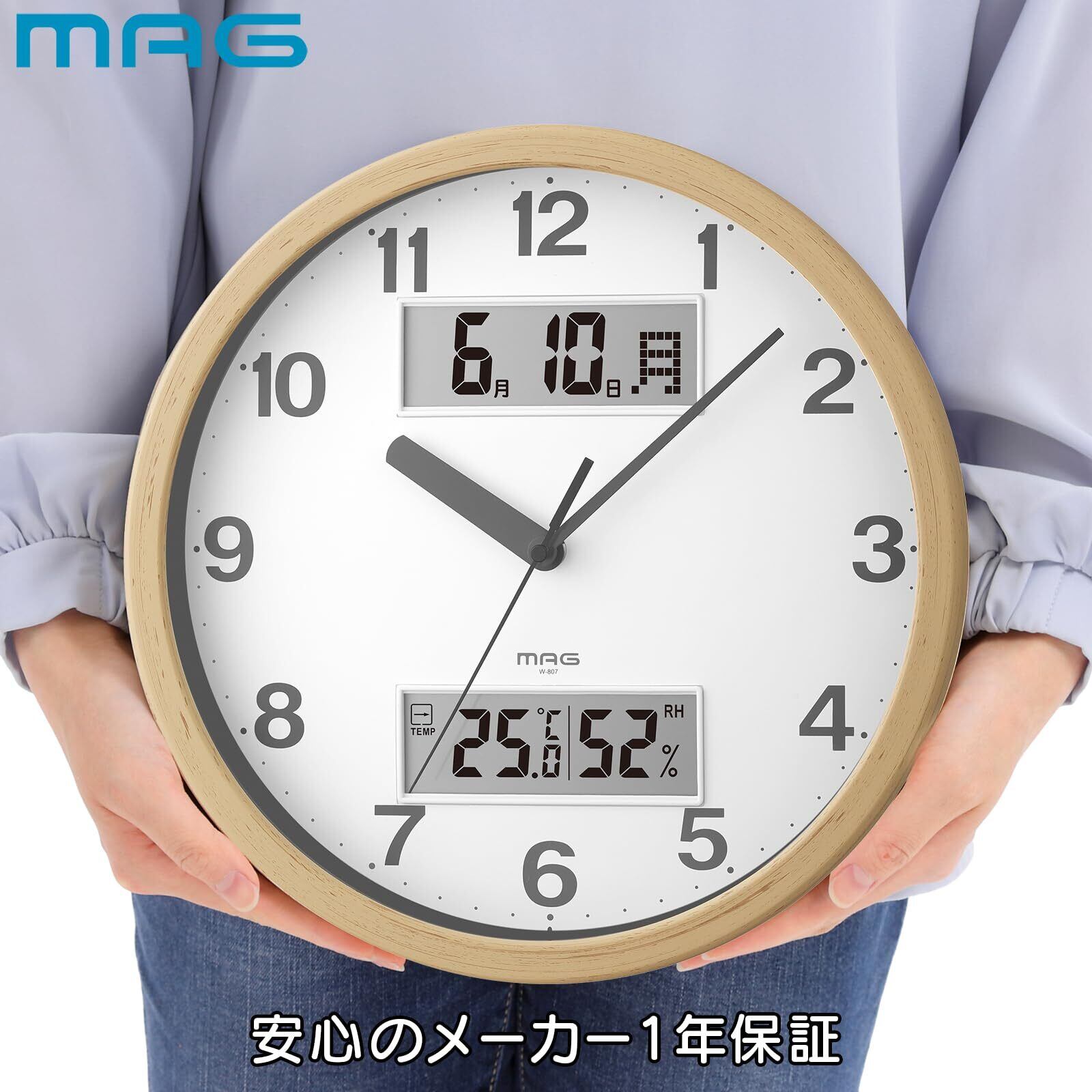 MAG(マグ) 掛け時計 壁掛け時計 アナログ おしゃれ インテリア 温度計 湿度計 温湿度計 カレンダー 静音 連続秒針 直径29.0㎝ 木目調 ナチュラル ダブルポイント W-807A N-Z ノア精密