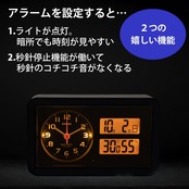 ●明暗センサーによる、夜間秒針停止機能で秒針の音で睡眠の邪魔をすることを防ぐ