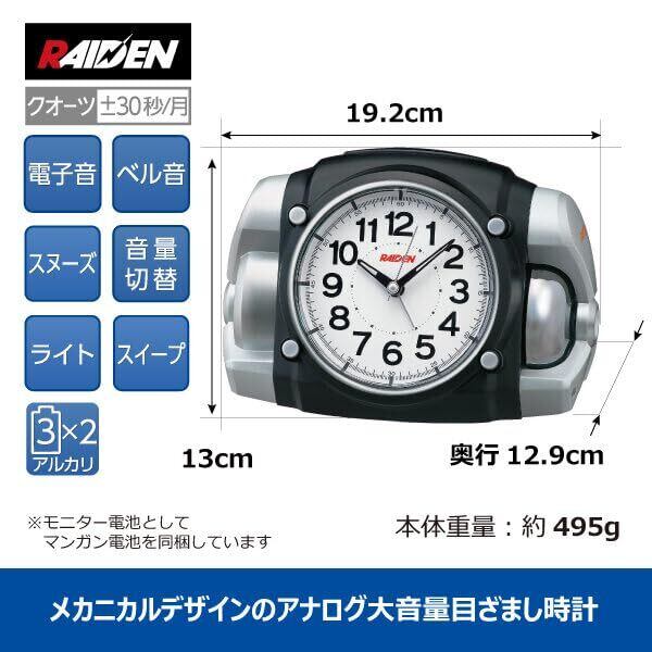 【人気商品】セイコークロック 目覚まし時計 置き時計 アナログ 大音量 黒 PYXIS ピクシス RAIDEN ライデン 130×192×129mm NR456K