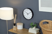 遠くからでも見やすいシンプルなデザインの掛時計。