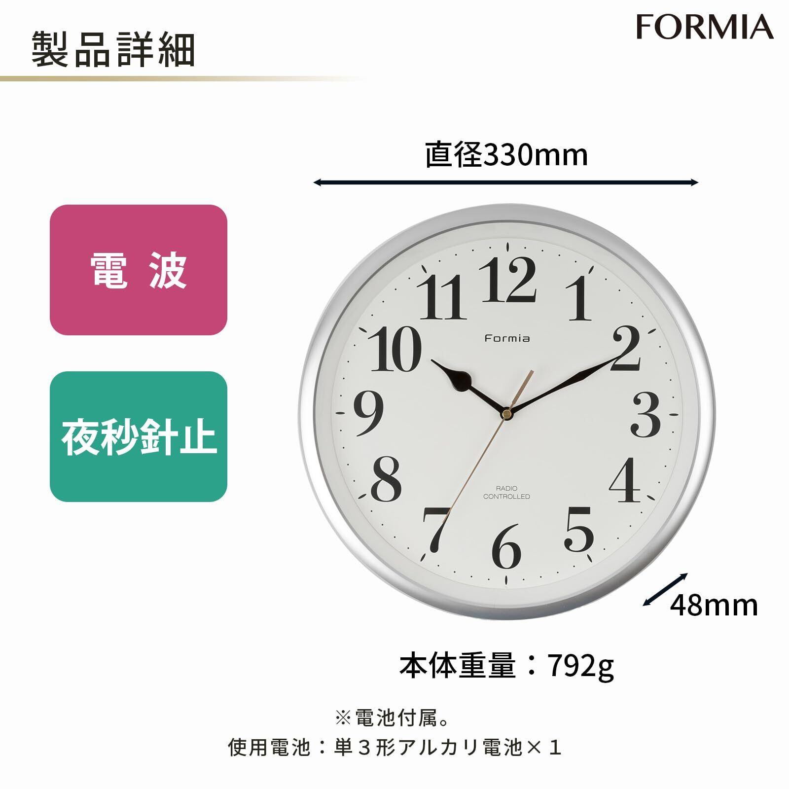 Formia(フォルミア) 電波 壁掛け時計 静音 大画面 見やすい シンプル 子供 夜間秒針停止 アナログ 保土ヶ谷電子販売 シルバー HWC-007RC