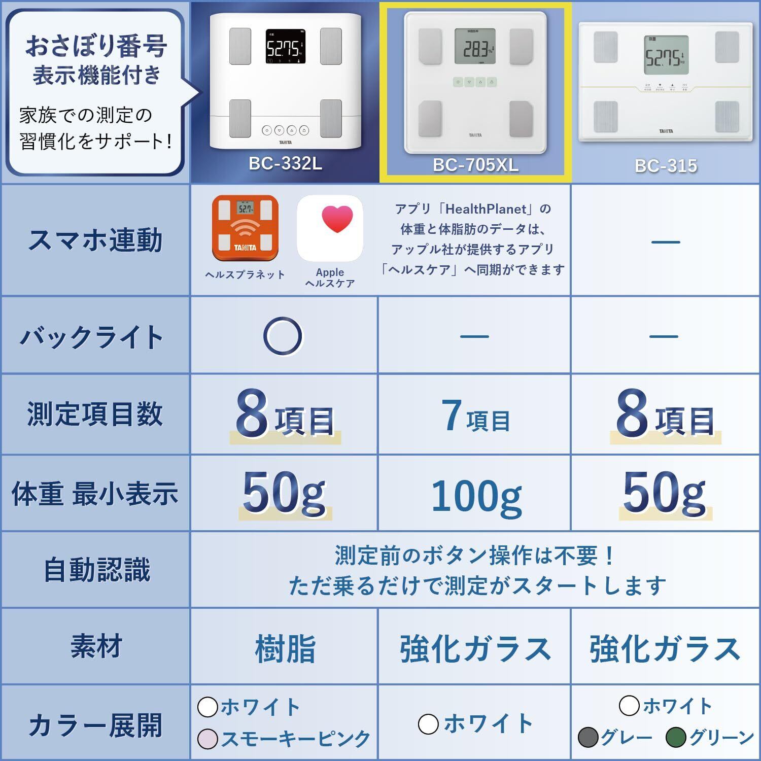 タニタ 体重計 体組成計 ヘルスメーター BC-705XL【体脂肪率/内臓脂肪レベル/筋肉量/基礎代謝量/体内年齢/BMI/スマホ連動/乗るピタ】