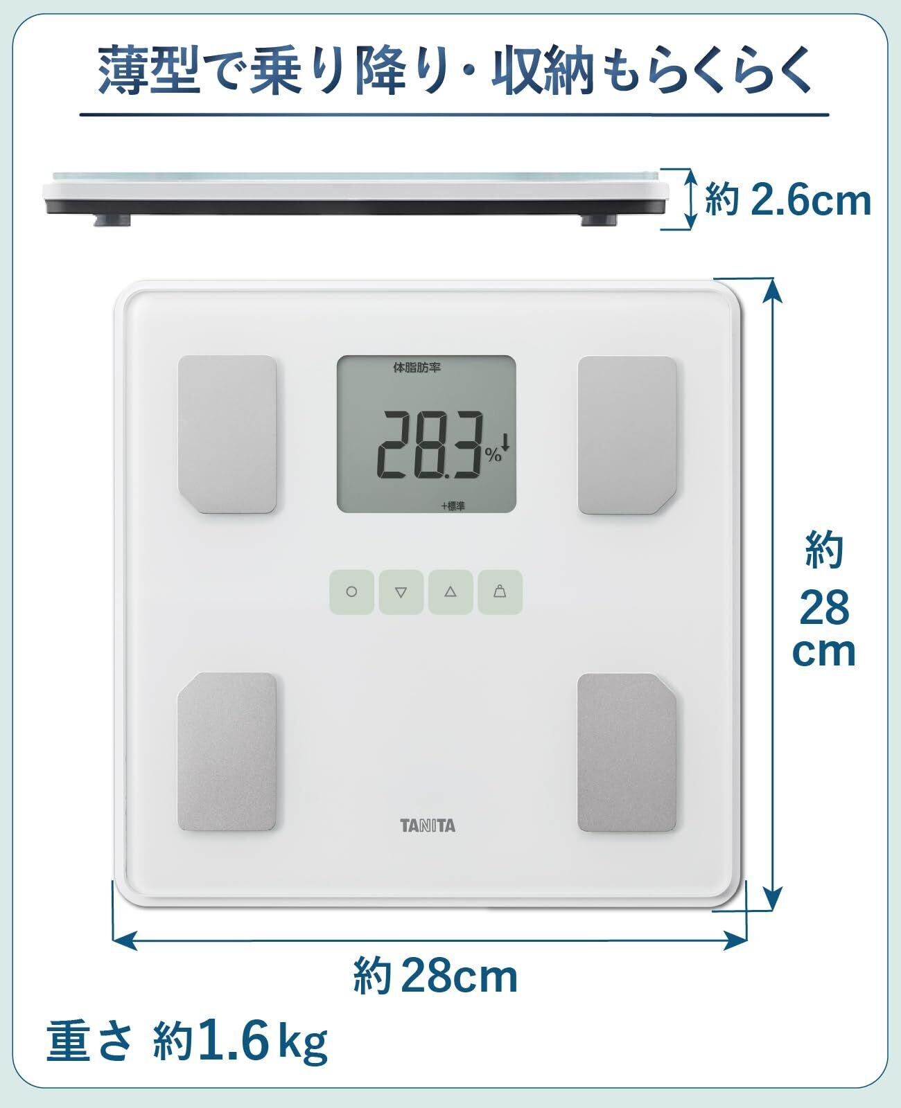 ・シンプルかつ精度感がありインテリアとの親和性が高いデザイン ・アプリ管理ができるBLE通信対応体組成計