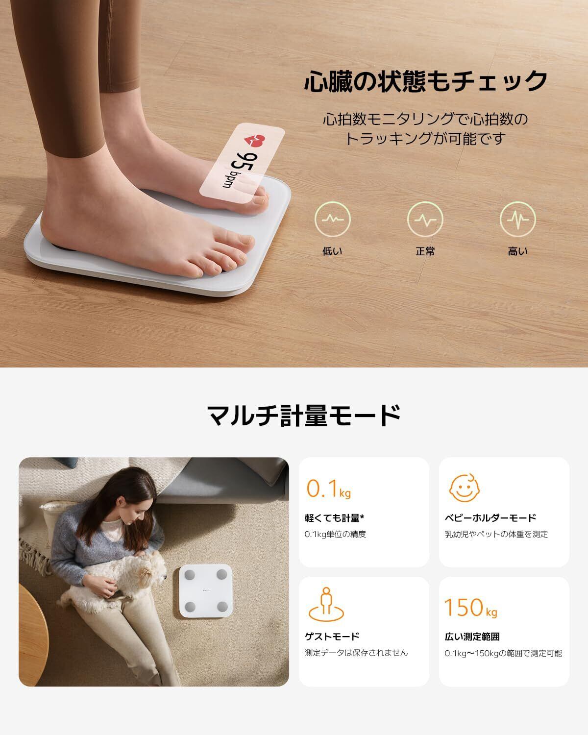 シャオミ(Xiaomi) 体組成計 体重計 S400 アプリ対応 25項目測定可能 体脂肪率/BMI/基礎代謝量/水分量/心拍数/筋肉量/高精度 軽量 ホワイト