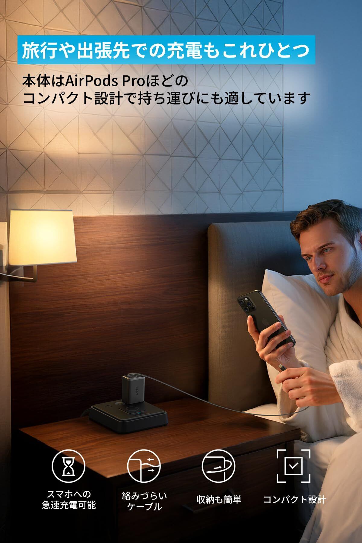 旅行や出張先での充電もこれひとつ:本体はAirPods Proほどのコンパクト設計で持ち運びにも適しています。