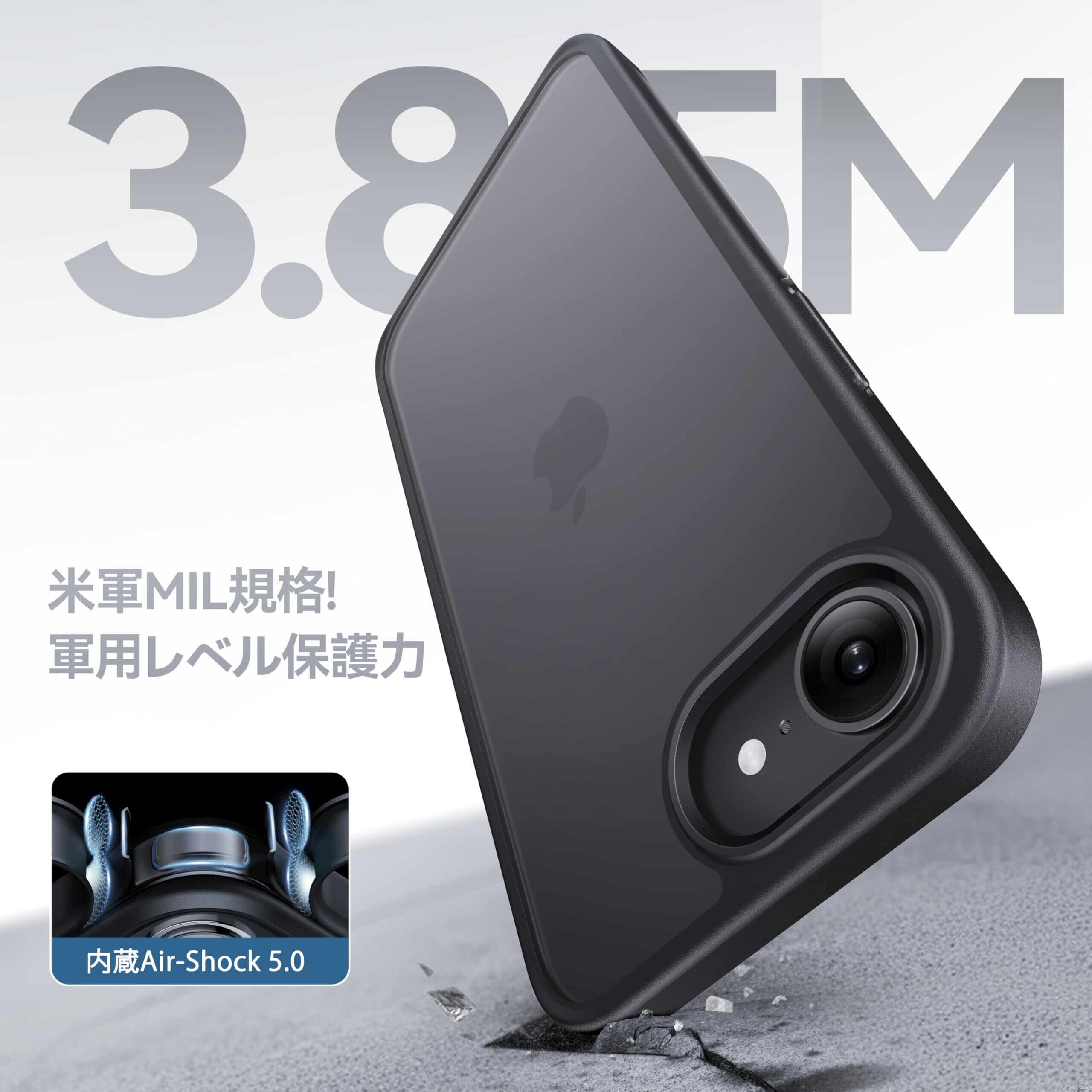 【米軍MIL認証済み・もしもの時も安心】米軍MIL規格「MIL-STD-810G」をクリアした強靭なiPhone 16e 用ケース。四隅のAir-Shock5.0と三層の耐衝撃構造により、3.85mの高さから5500回、36方向でアスファルトや砂利に落下させてもスマホ本体は無傷!日常使いから旅行まで、どんなシーンでも安心して使える。【365日安心】12時間以内に対応、安心してご購入ください!(購入履歴→購入商品→販売者→質問からご連絡ください)米軍MIL認証番号:GZMR220702237705