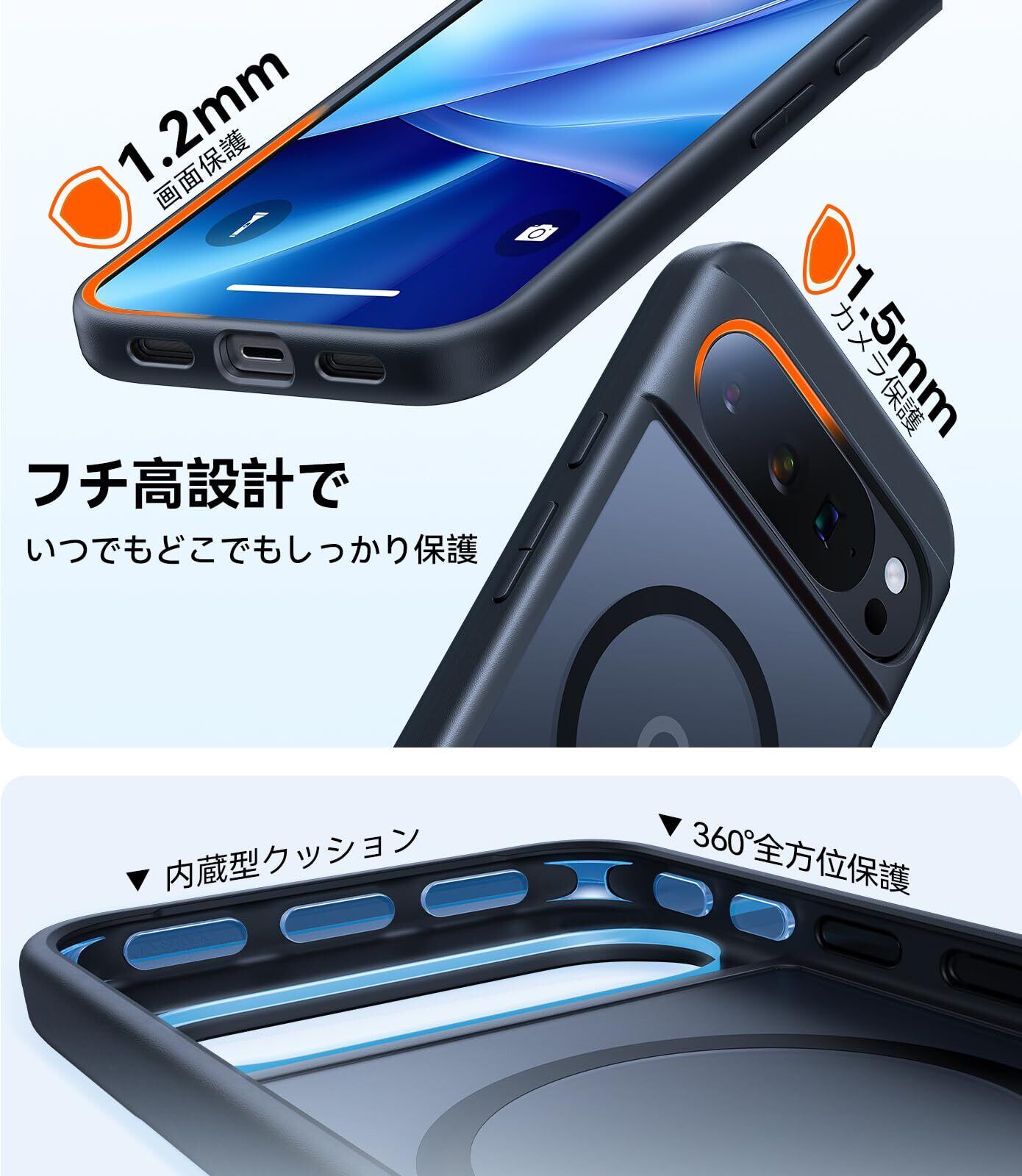 【卓越した滑り止め性能を備えたケース】グーグルピクセル10 pro 専用ケースは TPU と TPE の複合素材を採用し、柔軟性と耐衝撃性を兼ね備えた高性能保護を実現しています。混合素材は TPU よりも強靭で TPE よりも柔らかい触感で、快適な使用感を提供します。表面には防指紋・防塵ゴム塗料を施し、3H 以上の高硬度マット仕上げで耐擦傷性を大幅に向上させており、激しい環境でも機種をしっかり保護します。google pixel 10 pro ケース