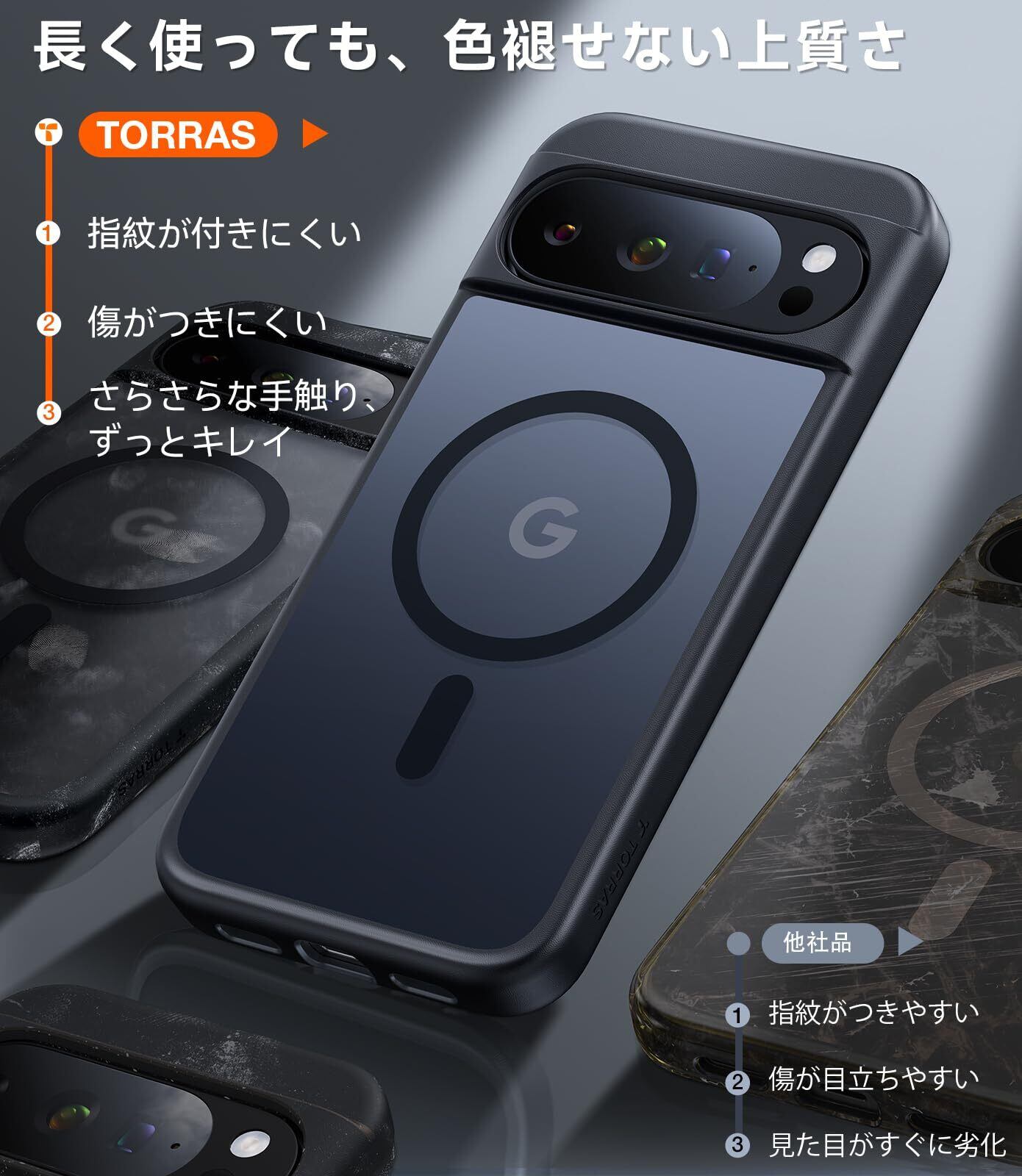 TORRAS Google Pixel 10 / Pixel 10 Pro 用 ケース【米軍規格・Magsafe 対応】 衝擊吸収 ワイヤレス充電対応 半透明 黄変防止 防指紋 防滑 エアバッグクッション 搭載マグネット カラー交換可能ボタン Guardian-Mag ブラック