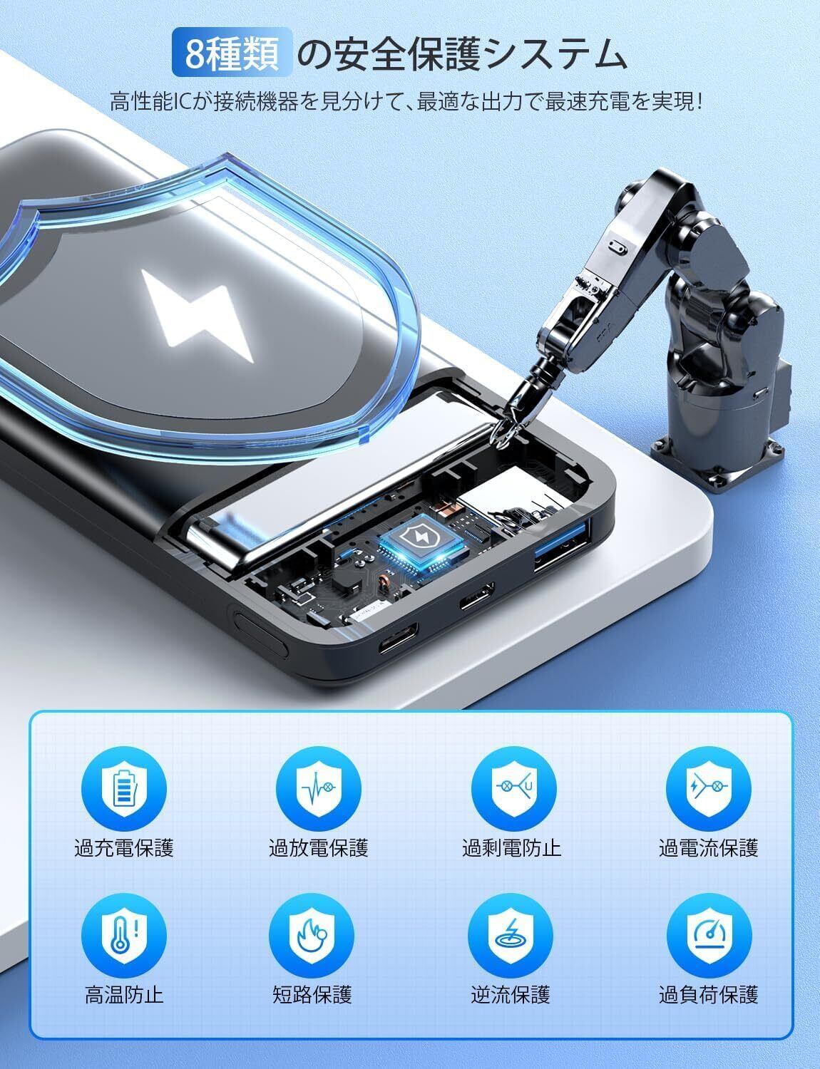 【長く使える安全設計&おまかせ充電機能】長期間安心してお使いいただけるように、本製品はUN38.3に準拠した発火しにくく、より膨れにくい電池の構造技術を採用、過充電・過放電・過電圧・過電流防止機能および短絡保護機能と温度検知機能の6つの保護機能など安心の回路設計を備えました。充電ポートに高性能ICが内蔵されており、接続機器端末(iphone &Android)を自動で見分けて最適な出力で最速に充電できる”お任せ充電”に対応しています。充電が完了したら自動でストップ、電池の過充電を防止、スマホバッテリー寿命を長持ちさせることができます。【PSE安全認証済】日本の電気用品安全法(PSE)の技術基準に適合した安全性の高い商品ので安心・安全に使用いただけます。
