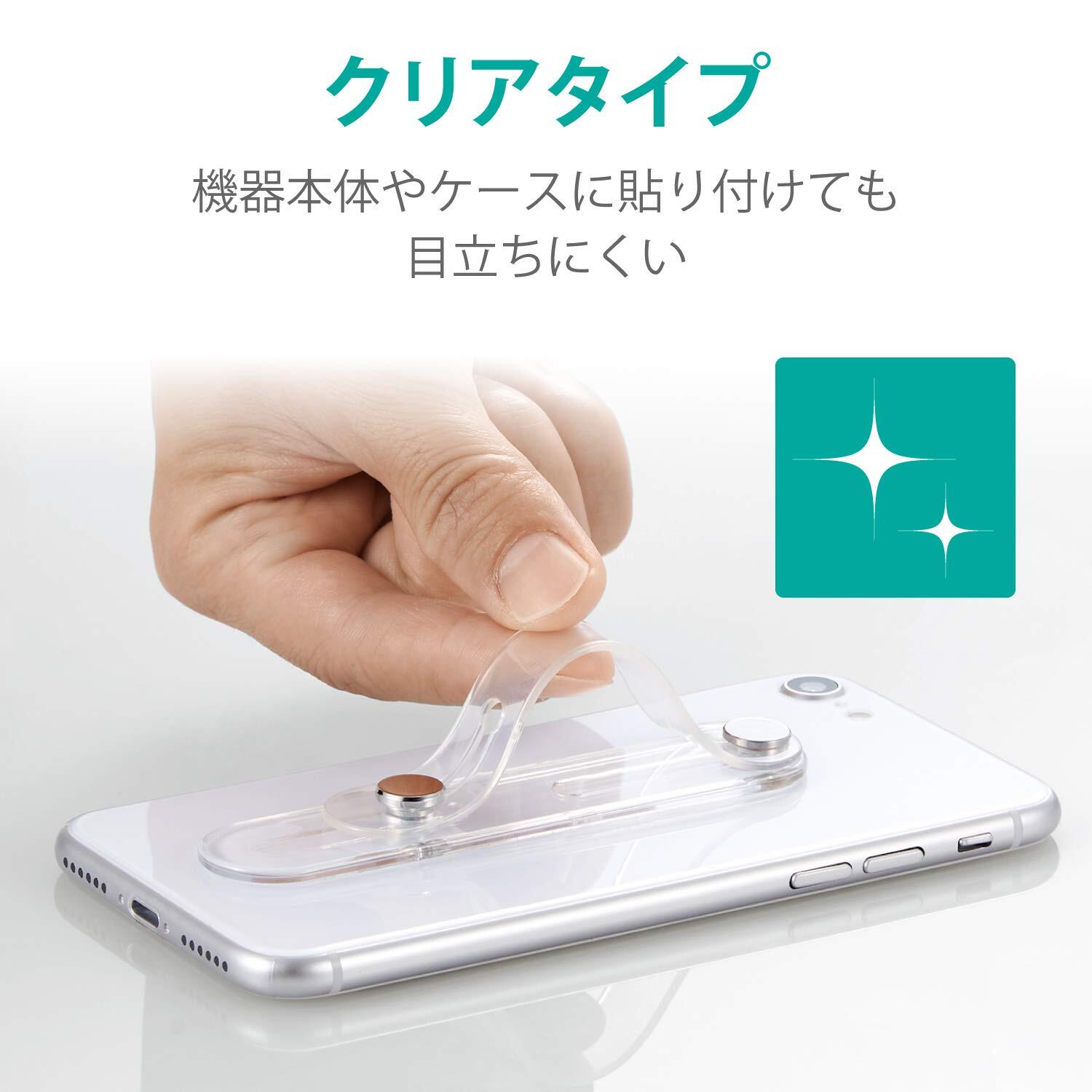 ●背面に貼りつけてスマートフォンの落下を防ぐ、スマホバンド(スマホリング)です。●バンドに指を通すことで片手でもスマートフォンが持ちやすくなります。●機器本体やケースに貼り付けても、目立ちにくいクリアタイプです。●長時間使用しても指が痛くなりにくい、やわらかいTPU素材を使用しています。●動画の視聴を快適に楽しむことができる、便利なスタンド機能がついています。●耐荷重は250gまでです。●※耐荷重を超えて使用しないでください。