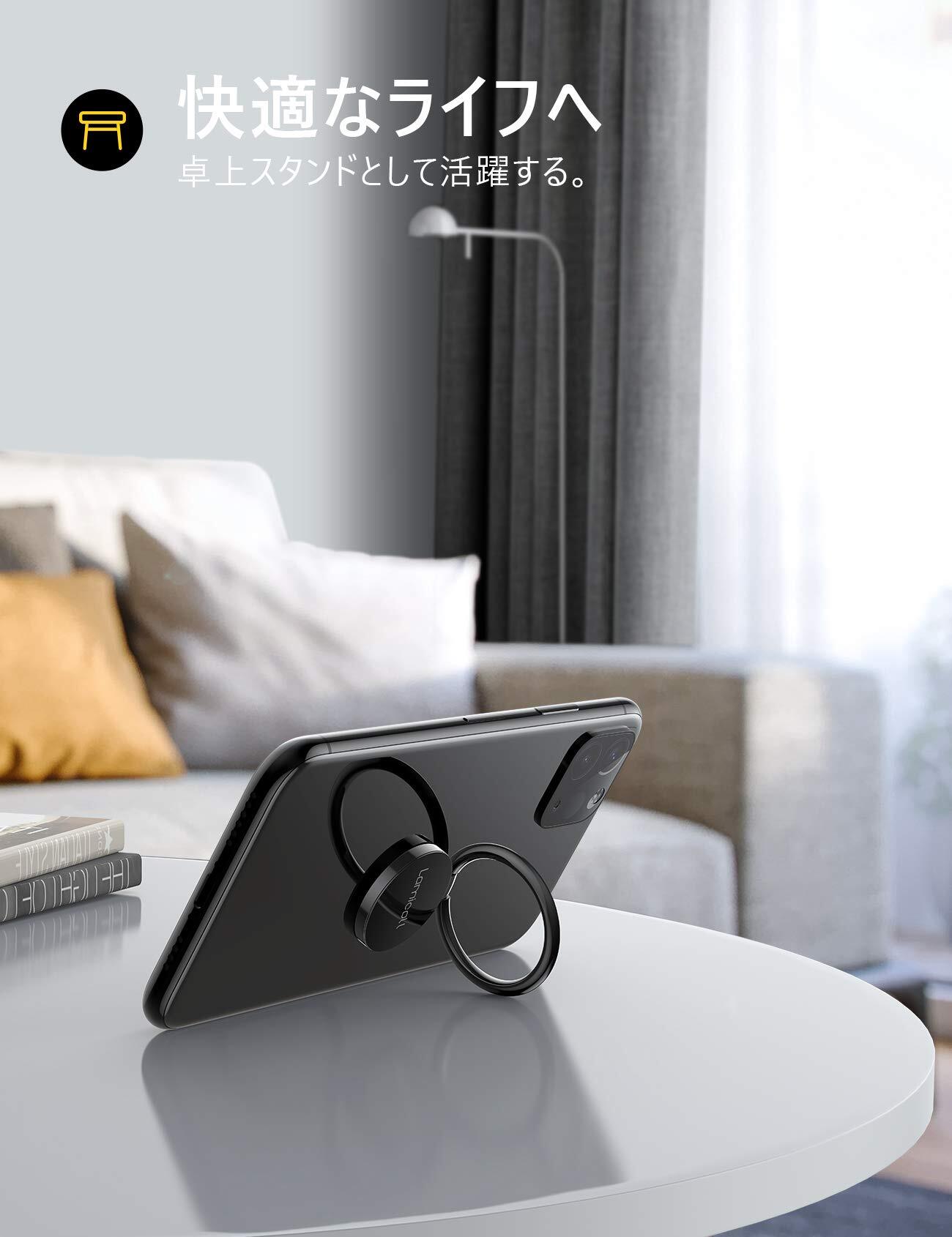 Lomicall スマホリング 4㎜ 薄い 180度 360度回転式 : 携帯電話 指輪型 ホールドリングスタンド 機能 フィンガーリング 薄型 アイホン 指リング 落下防止 角度調整可能 ケイタイ 丸型 取り外し 車載磁石ホルダー対応 2024 iPhone 16 16Plus 16Pro 16Pro Max 15 14 13 12 mini XS XR X se アンドロイド に対応 ブラック