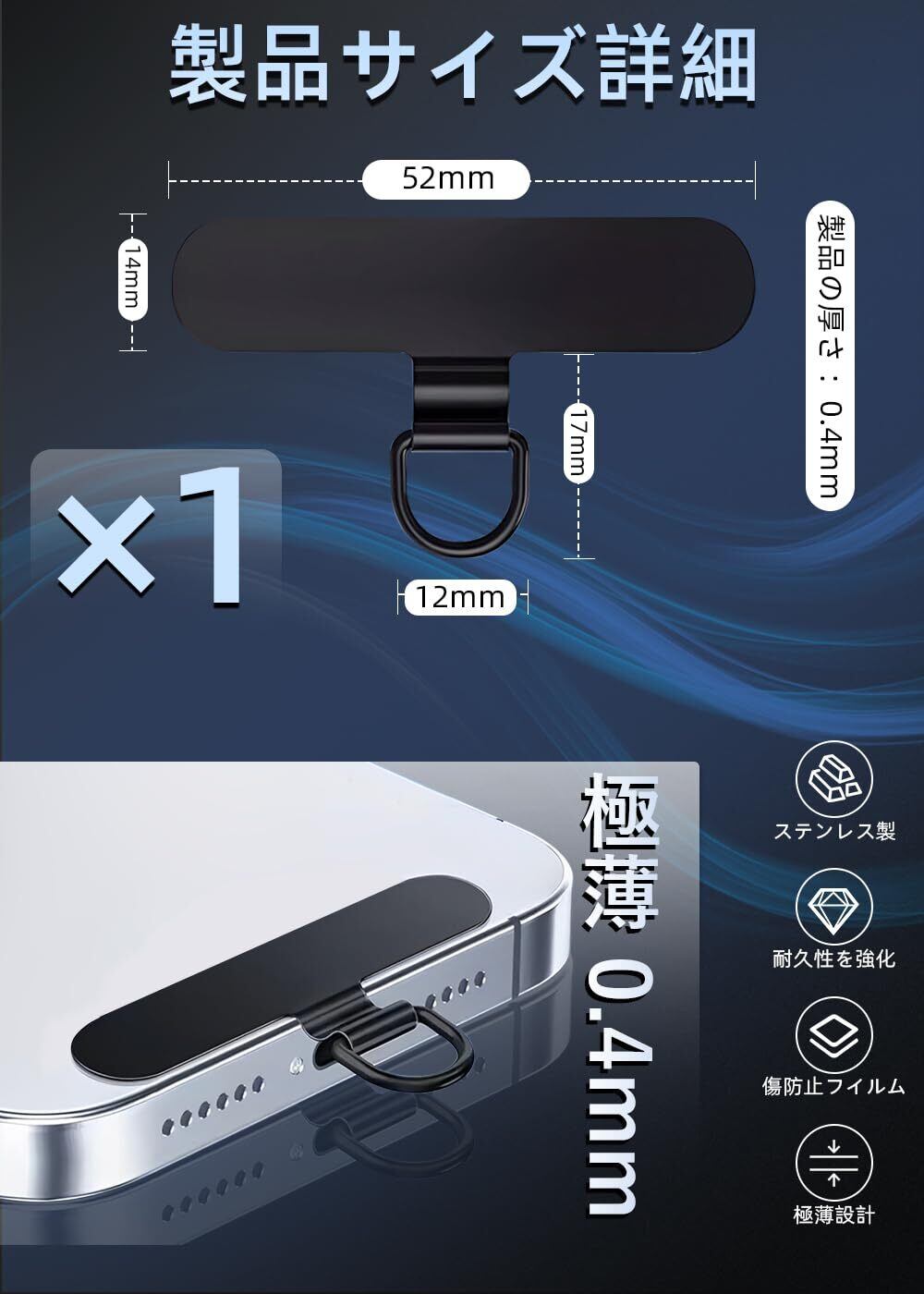 ZXZone ストラップホルダー【 傷防止フィルム加工】 スマホ ストラップホルダー 折り曲げても浮きにくい設計・極薄0.2mmの金属製タグパッチ採用 携帯ストラップホルダー 落下防止 首掛け 斜めがけ 肩掛け 首かけ 携帯ストラップ iphone android スマホアクセサリ全機種対応 (ブラック-TD)