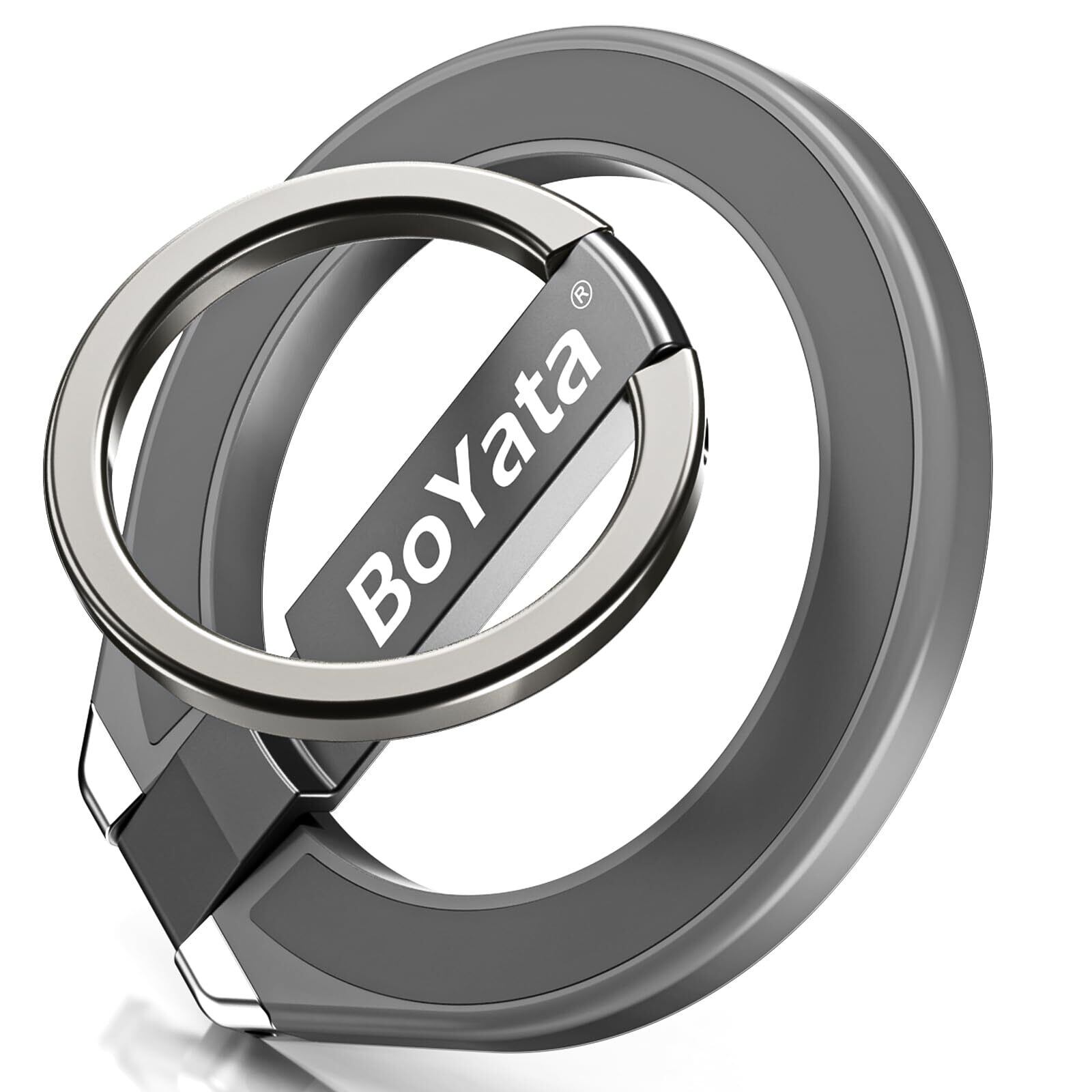 (アップグレード版) BoYata マグセーフ リング マグネット式 スマホリング 両面マグネット 超强磁力 携帯リング バンカーリング リングホルダー スマホ リング メタルリング付き スタンド機能 360°回転 落下防止 簡単着脱 超軽量 薄型 高級合金素材 iPhone16 15 14 13 12 Xperia Android全機種対応 (グレー)