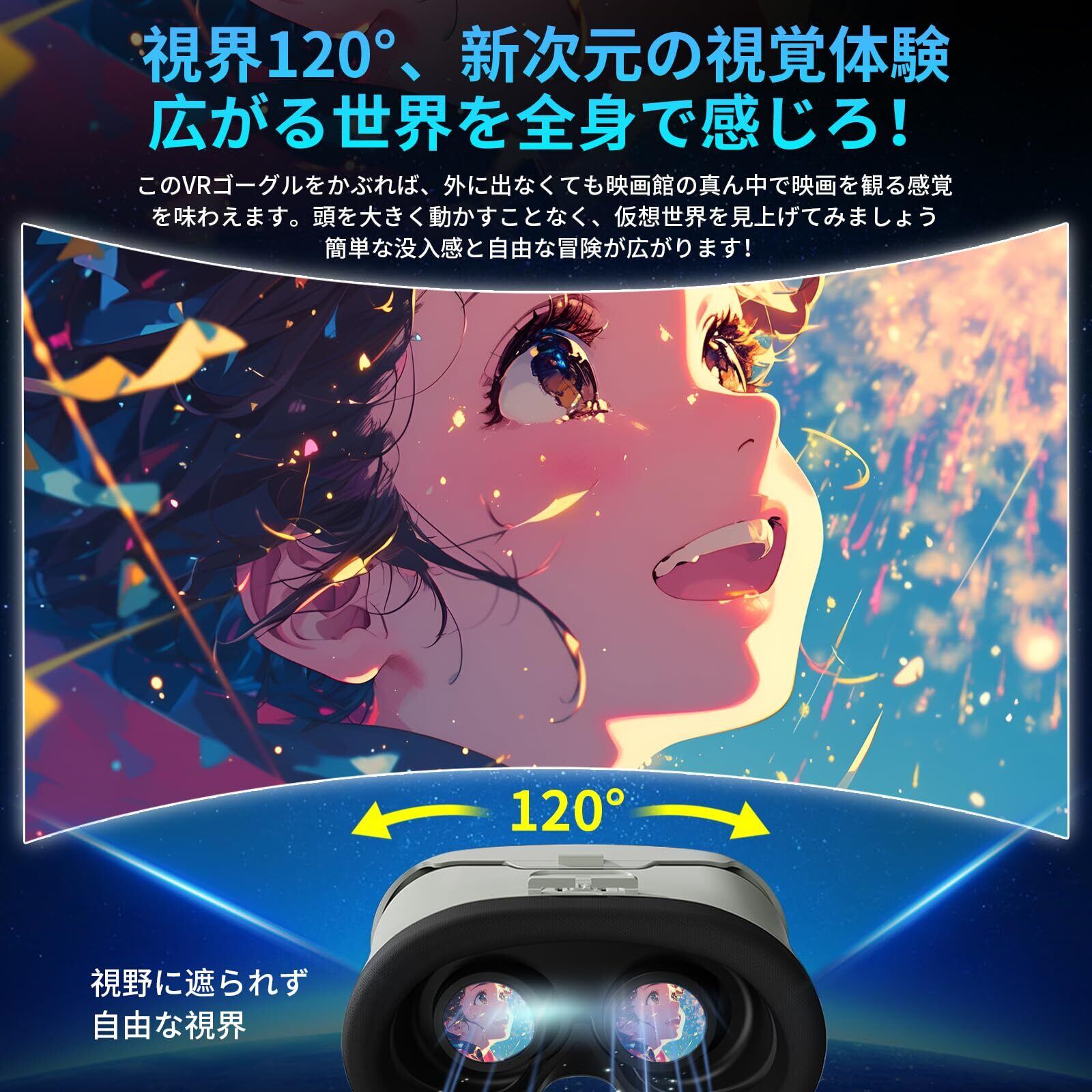 VRゴーグル 【2024新登場&スマートフォン対応】VRヘッドセット VRヘッドマウントディスプレイ 3Dパノラマ体験 1080P 超広角120°視野角 vrゴーグル スマホ用 非球面光学レンズ ピントや目幅調整可 装着感良い vr 通気性 軽量 放熱性良い 4.7~6.7 iPhone&androidなどのスマホ対応 家で楽しめる 日本語説明書付