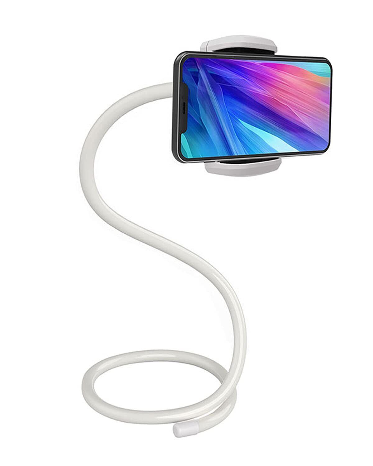 SnakeHolder スマホホルダー 自立する万能スマホスタンド フレキシブルアーム スマホ首対策 首掛け 卓上 床置き 360度回転 角度調整可能 長さ94cm シリコンアーム 在宅勤務 ウェブ会議 オンライン授業 ベッド 車 自転車 ベビーカー 自撮り 三脚 iPhone/Android 4.0~6.7インチ画面対応 (ホワイト)