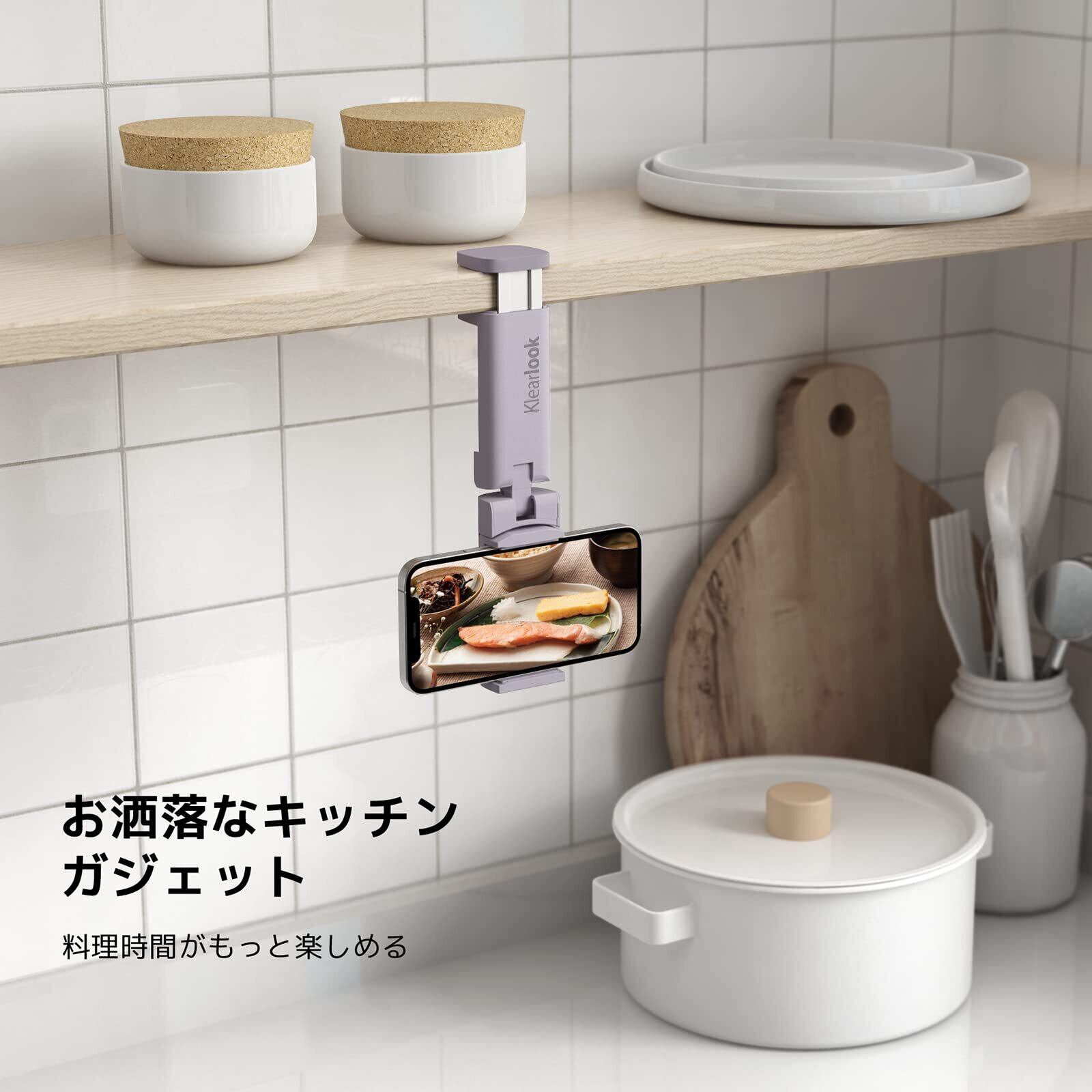 【2 Wayスマホホルダー】置き型タイプと挟み型タイプの2種類固定方法があり、飛行機客室の折りたたみ式トレイ、スーツケースのキャリーバー、どこでも設置可能です。オフィス、ベッドサイド、キッチン、ジム、ホテル、車内などの場所で、両手を解放して自撮り、動画視聴、ビデオ通話などを楽しみます。