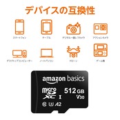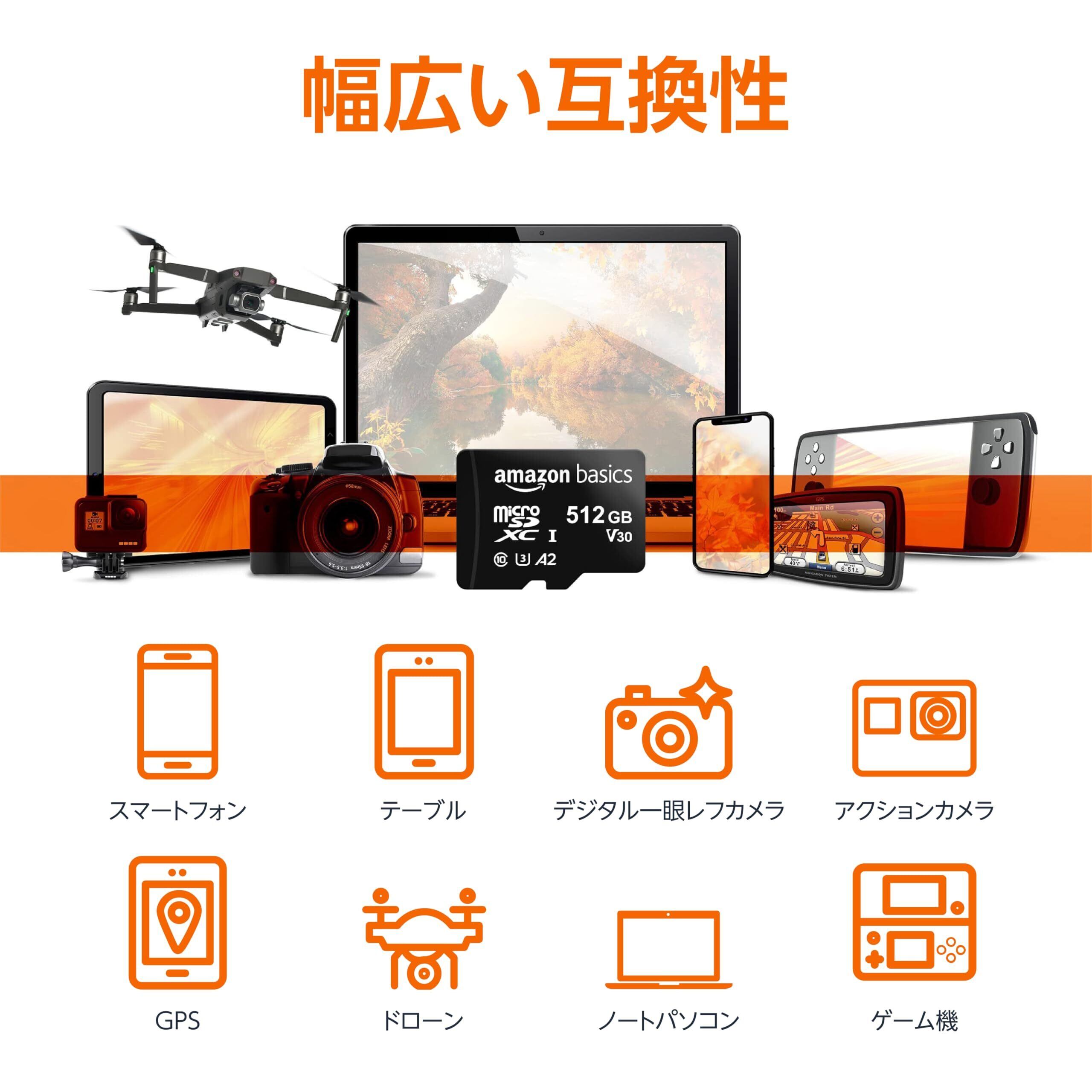 ベーシック microSDXC メモリーカード 512GB フルサイズアダプター付き A2 U3 読み込み速度最大100MB/秒 ブラック