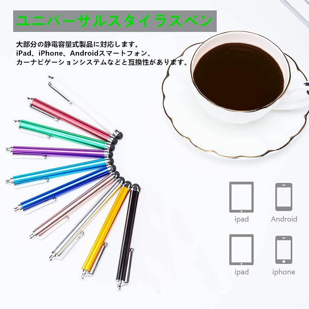 LIKENNY タッチペン スマホ用 極細 ipad iphone Android 用スマートフォン タブレット 静電容量性 ゴムペン先 指で触れずペン 10本セット(10色,ランダム)